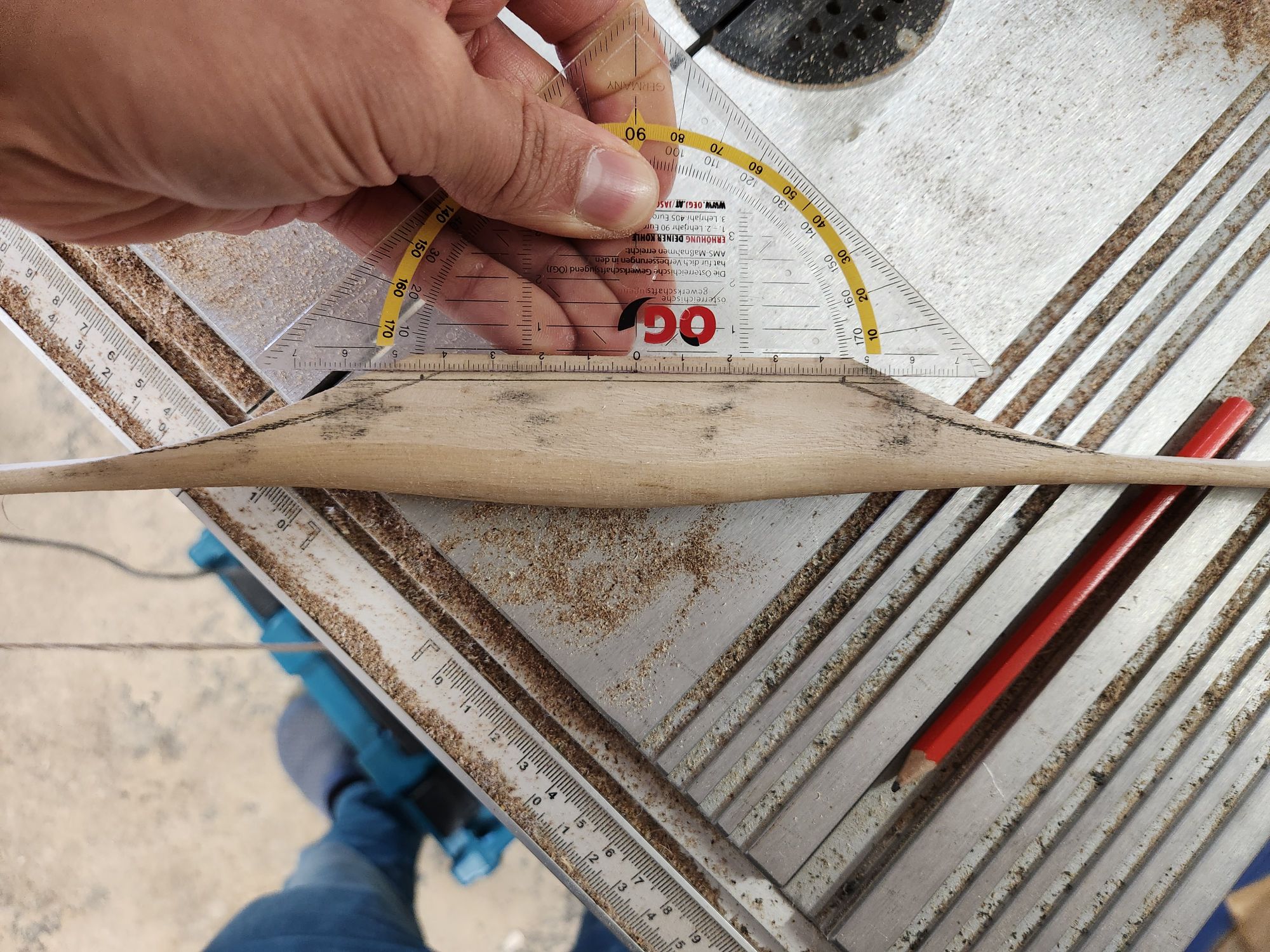 Obwohl es vielleicht besser wäre gleich einen Holzstreifen im inneren drittel zu kleben und dann erst weiter zu tillern. Sonst wird mir die Wurfarmmitte vielleicht noch zu schwach.