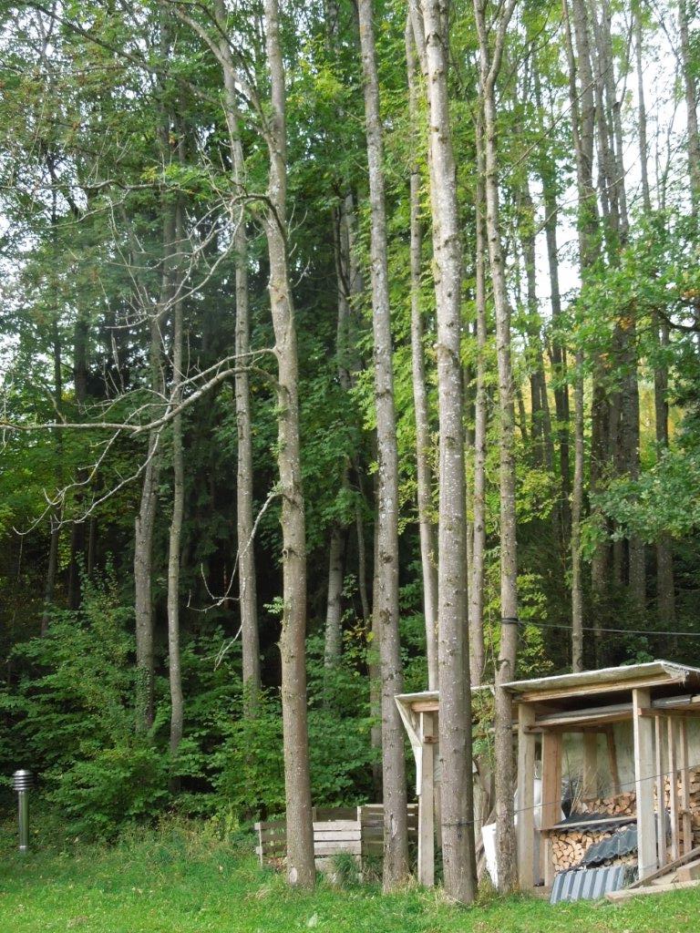 aus Sicherheitsgründen mussich im kommenden Winter am angrenzenden Wald diese Eschen und Bergahornchen umlegen (25-40cm Stammdurchmesser, bis zu 25m hoch). Da werden wahrscheinlich Staves für die nächsten 100 Jahre dabei abfallen 8) .