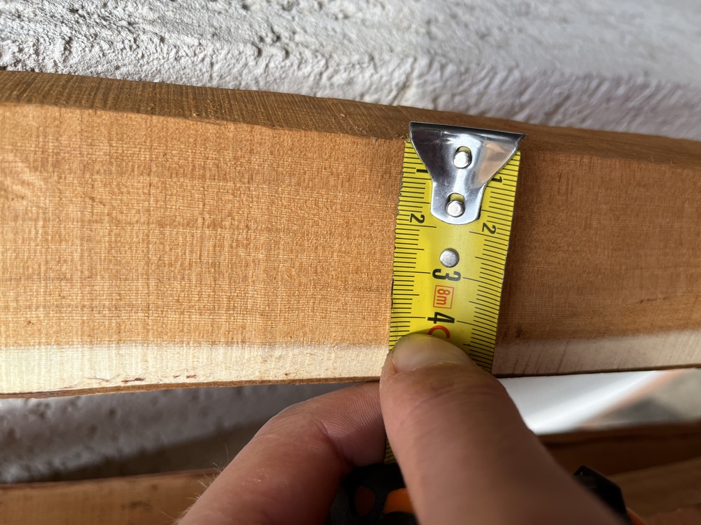 Wenn du die Rinde runterhaust und den Rücken mit verdünntem Lein einpinselst, kannste den 3. Jahresring/ letzten Splintring als Rücken nehmen, Robiniensplint von so jungen Ästen/ Stämmen is Hammerzeug. Und gibt n coolen Farbkontrast später.