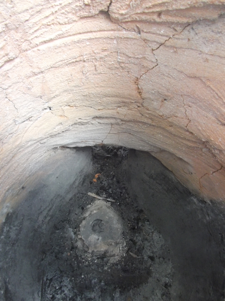 ..und der Boden des Ofens nochmal <br />von heruntergefallenen Lehmbröckchen <br />gesäubert...