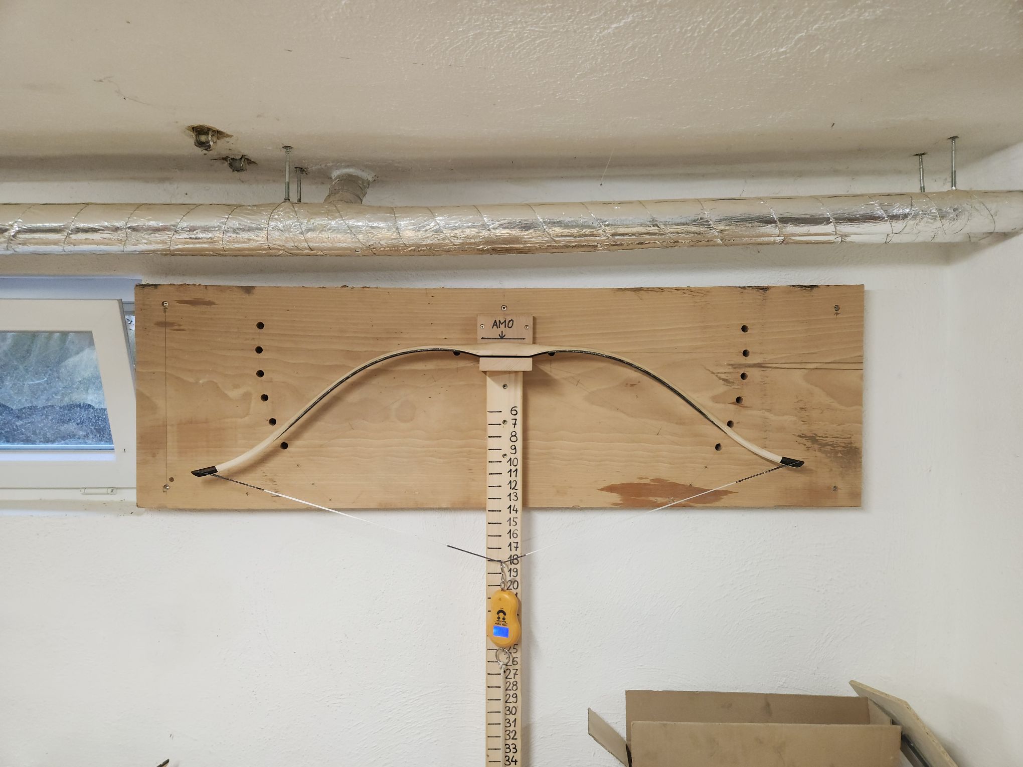 Ich hab die Balance der Wurfarme und die Verdrehung ein wenig korrigiert und hab dann bis 27" ausgezogen. Da hat er jetzt genau 40#. Also viel schwächer als ich schon befürchtet hatte, aber genau richtig für mich um damit auf Turnieren zu schießen. Also ich bin soweit happy 😊.