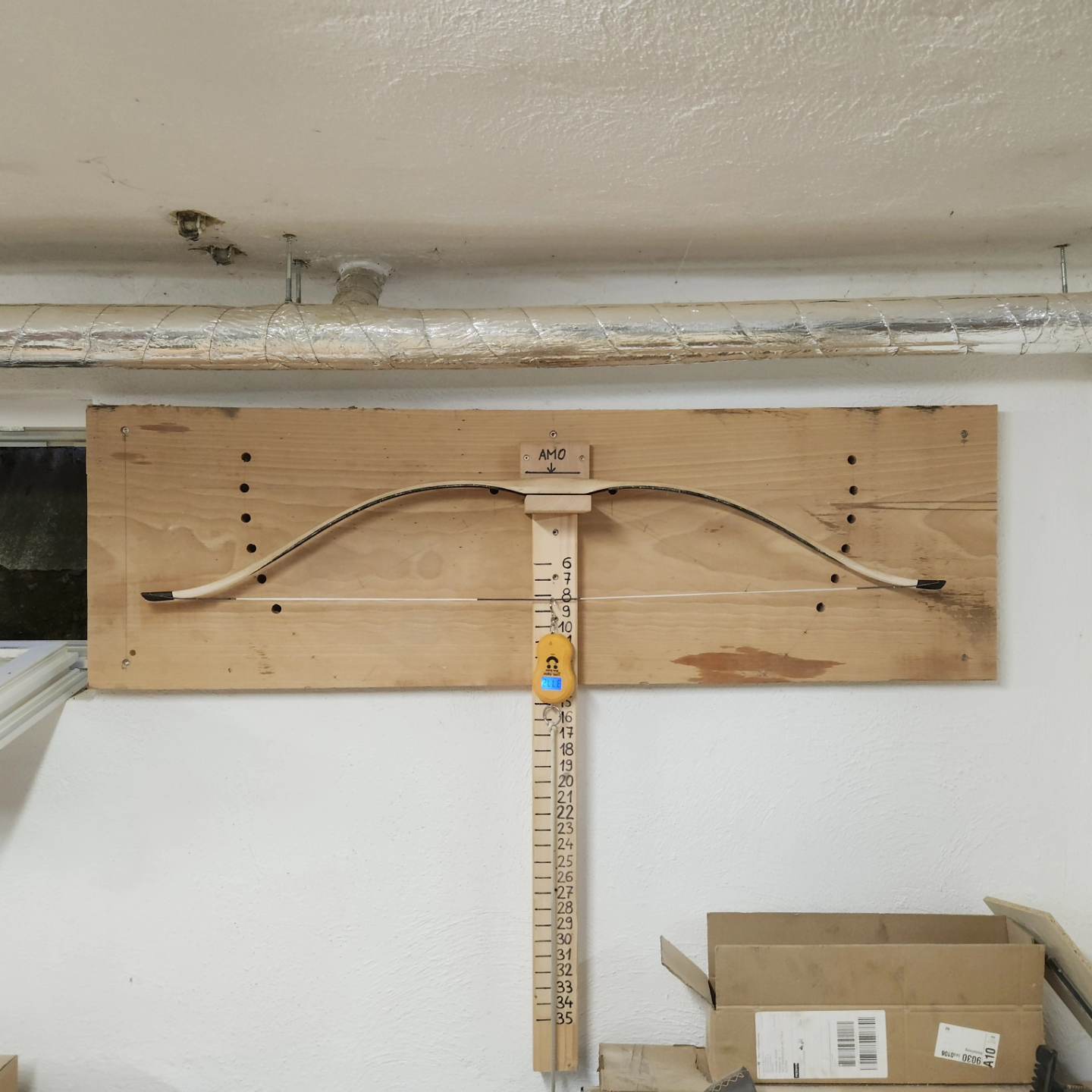 Gestern Nachmittag hab ich die Tepeliks montiert und ihn über Nacht darin ruhen lassen. Währenddessen hab ich Maß für eine Sehne genommen und heute morgen aufgespannt. Soweit sieht er ziemlich gut aus. Nur der obere Siyah ist etwas verdreht. Ich hab ihn mal bis 18" gezogen, da hat er 24#. Ist also kein Monster 😂. Was sagt ihr zum Tiller? Wie soll ich fortfahren?