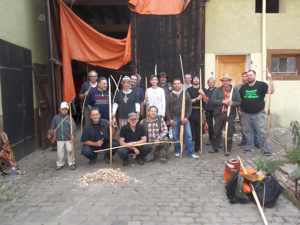 War toll wie immer. Hat Riesenspass gemacht. Und es sind einige tolle Bögen entstanden. Aus Staves, von denen die meisten wohl behauptet hätten, dass da nie ein Bogen draus wird. Mortens Paddel aus einem Eibebrett mit 10% Kern. Oder Flo´s 85Pfund ELB, ebenfalls aus Eibe, die nur aus Ästen bestand. Sind alle toll geworden. Es gab auch, wie immer, Bruch mit anschliessender ritueller Verbrennung. Aber unser verbalinkontinenter kleiner Hesse hat unverdrossen noch einen Bogen gebaut, der dann auch das Turnier überlebt hat.