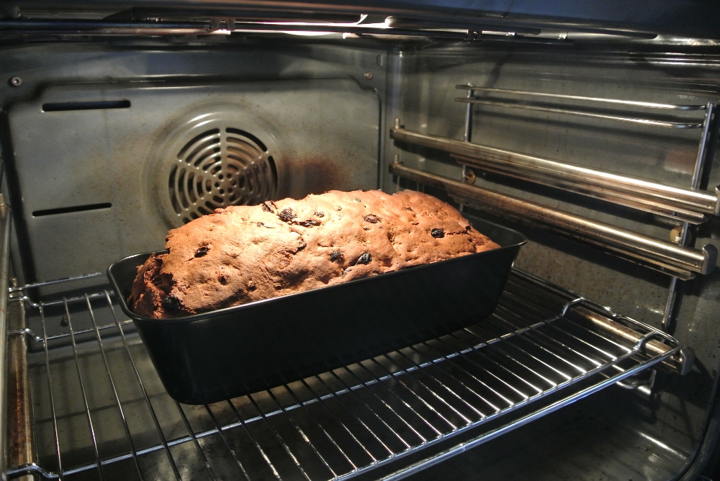 200 gr Walnüsse und 200 gr Rosinen untermischen und in gefetteter Backform bei 200 ° C 1 Stunde backen.
