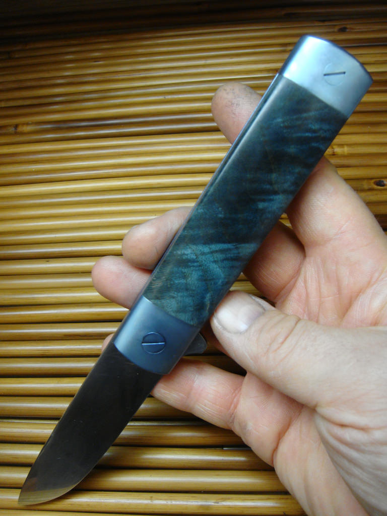 Nachteilig ist wohl das ausbluten der Farbe in das Harz, hier muss man wohl immer die Gefäßgröße an das Muster anpassen um nur soviel Harz als nötig zu verwenden. Ich habe jetzt einen knappen Liter tiefblaues Harz im Regal stehen. Ihr werdet jetzt wohl für einige Zeit blaue Messergriffe von mir sehen.