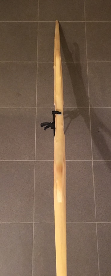Da der Rohling eh schon nur noch 170cm hatte und sich der Griff auch nicht mehr versetzen lässt, müsste ich beide Enden 9cm kürzen und hätte dann nur noch 152cm über. Das reicht bestenfalls für einen Kinderbogen. Was den geplanten Penobscot angeht, war‘s das wohl...