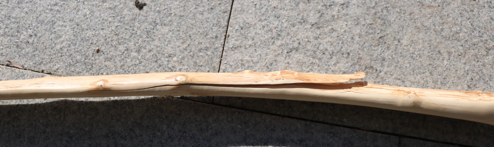 Ich gehe davon aus, das diese Verdickung wie ein Hebel gewirkt hat und der Bogen dann an der Aststelle, die breiter besser gewesen wäre gerissen ist.