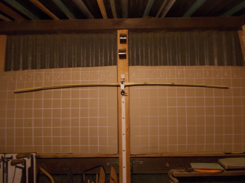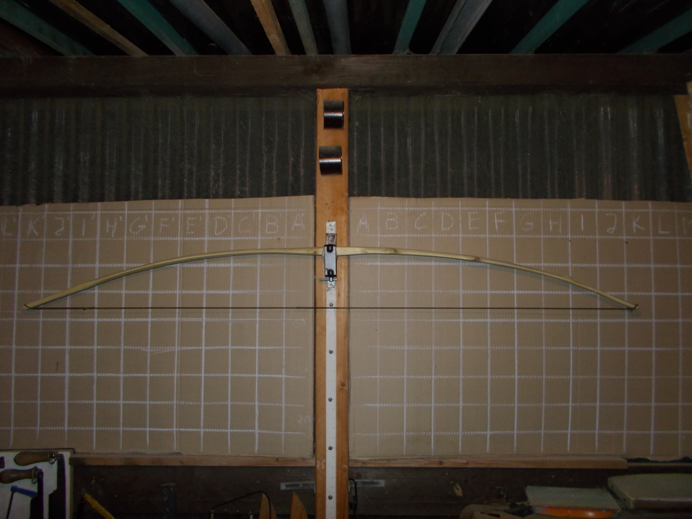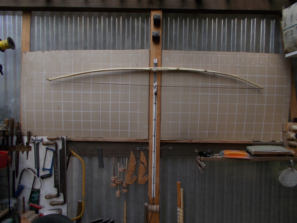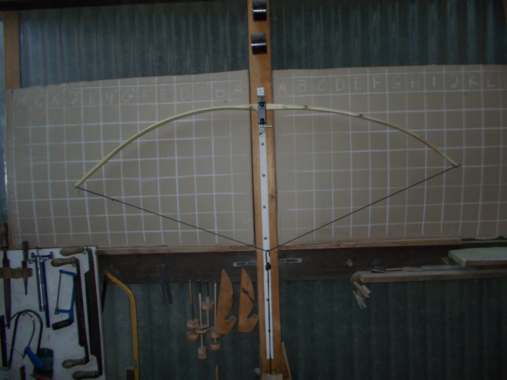 Sehne angepaßt und noch unter Standhöhe aufgespannt. Dann neue Schwachstelle ausgemacht und dann