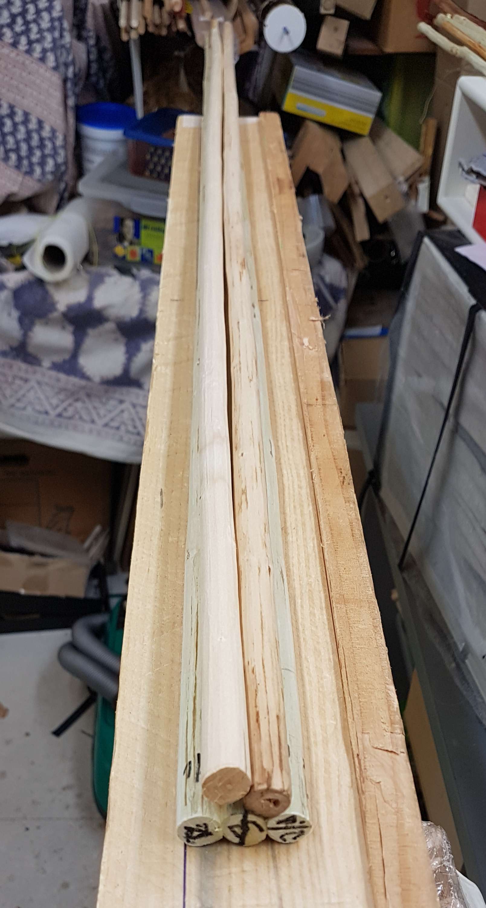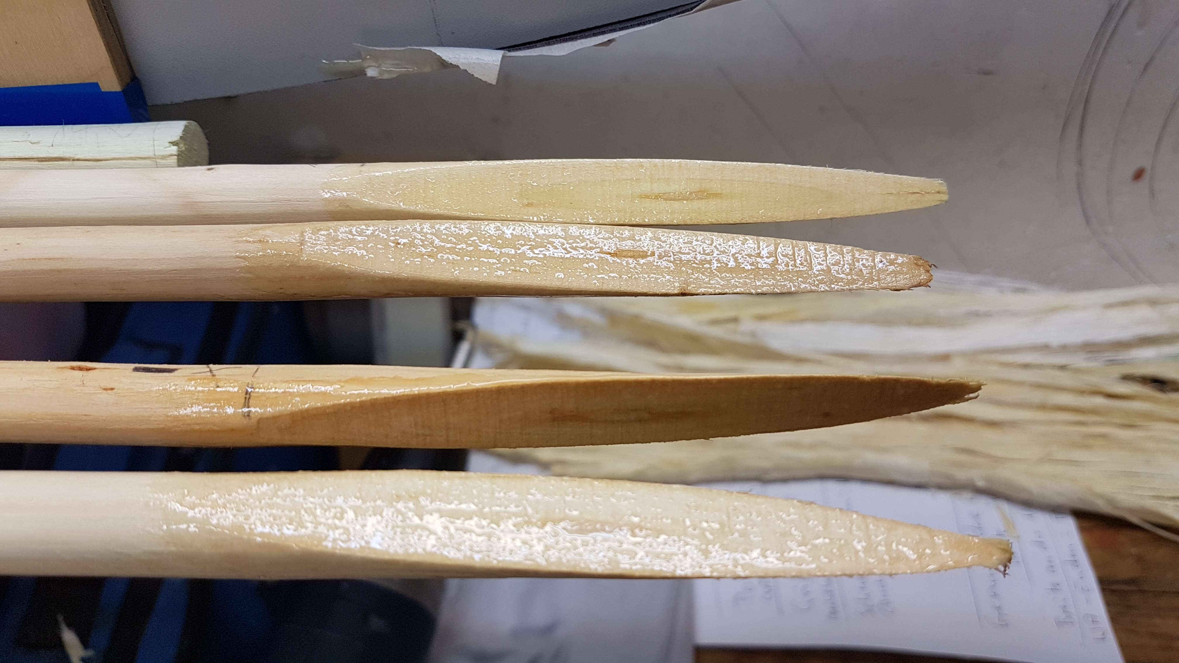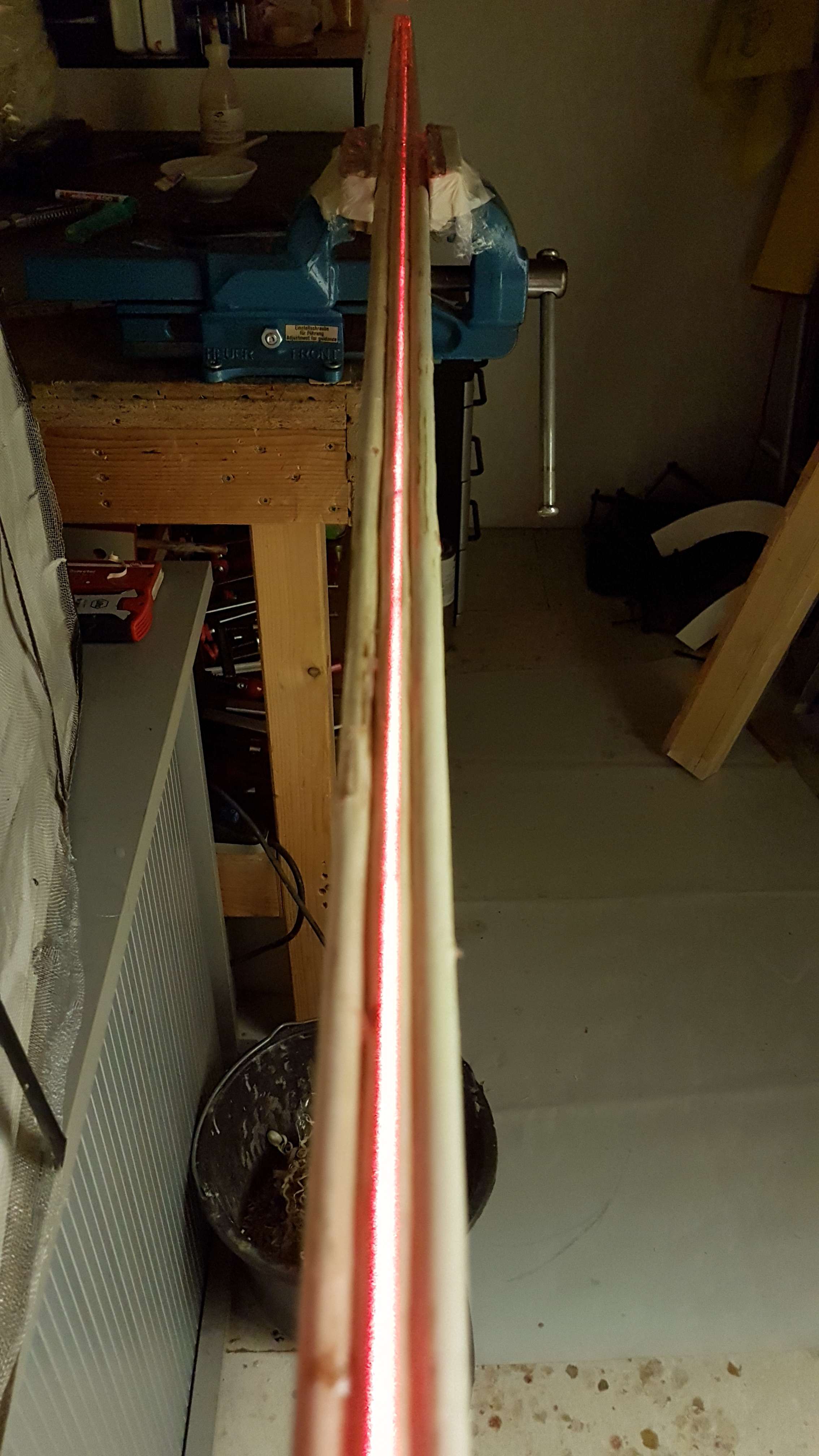 Die Stängel in halber Bogenlänge haben einen natürlichen Taper von ca. 9-14 mm. Finde ich jetzt astfreie Stangen über 200 cm Länge (was nicht so ganz einfach ist, es war schon schwer genug einigermaßen astfreie Stangen in halber Bogenlänge zu finden), habe ich einen Taper 9-20 mm ?? 20 mm ist natürlich nur grob geschätzt, geht aber in die richtige Richtung.