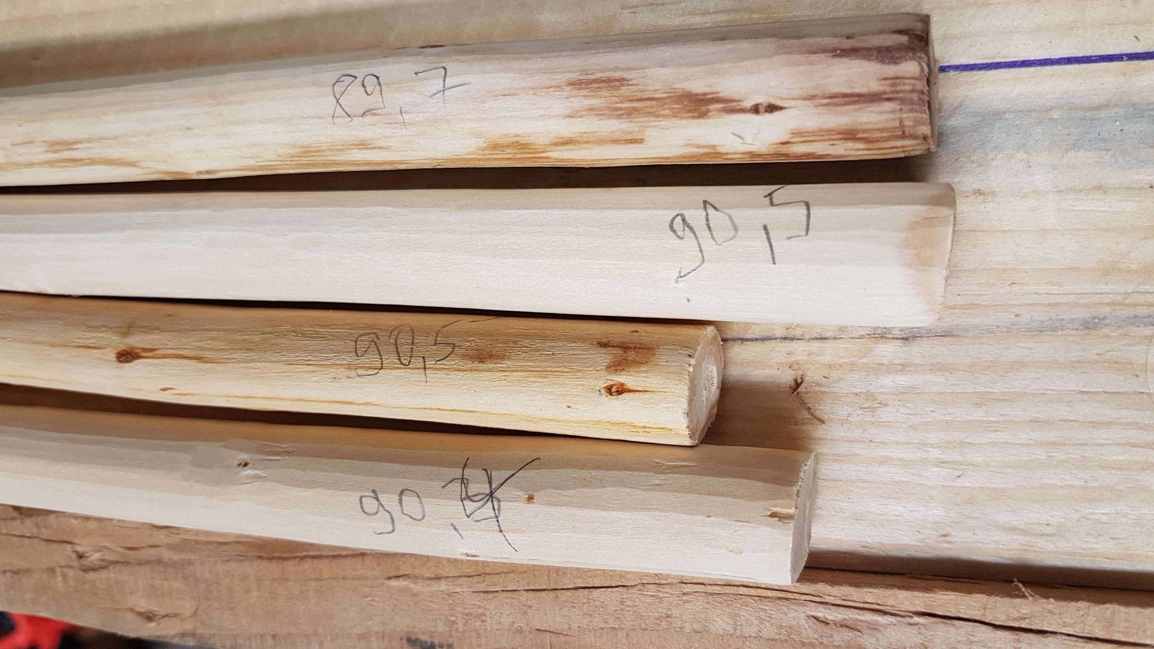 Dann ging es mit den Kirschpflaumen-Stängeln weiter. Alle gewogen, sind noch nicht ganz trocken und nochmal gerichtet. Dann die Bauchseite rausgesucht und markiert (möglichst wenig Äste auf der Druckseite).