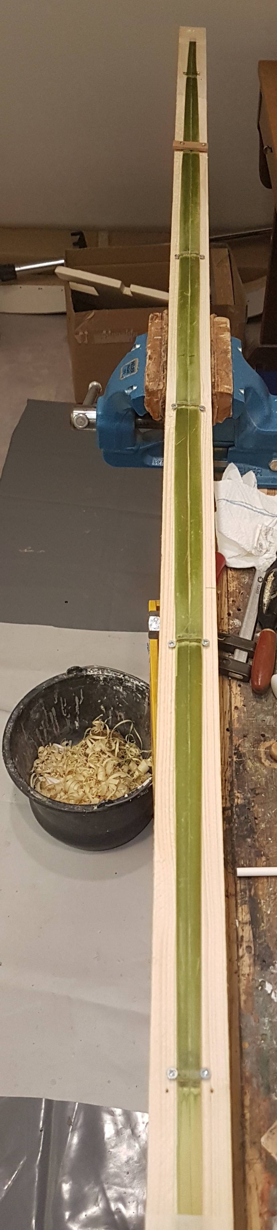 Heute wurde das Hainbuche-Laminat per Hand nachgeschliffen und das Powerlam (Hasel) getapert und in die Form gebogen.