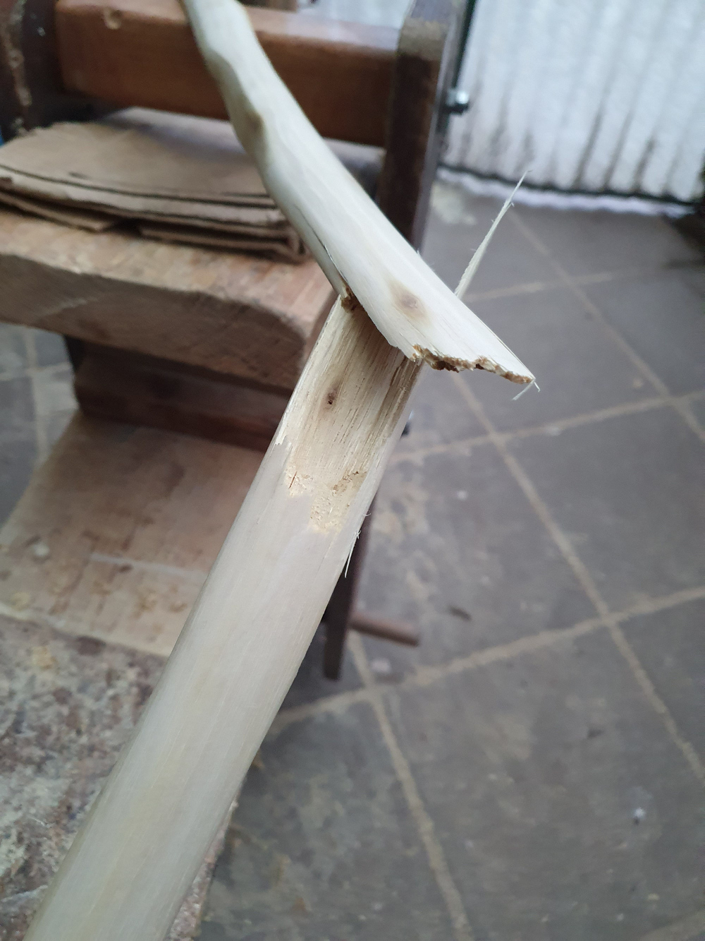 Da war ein Ast, durch die Trocknung hatte der Stab sich da verzogen.