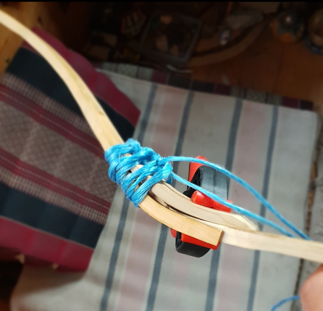 Am ersten Mittelteil sind beide Recurves gebogen...Plan ist im Moment einen Rahmen trocken und einem dampf zu biegen, um vergleichen zu können...extremer Vorteil an der Bauweise ohne Leim ist, dass Teile wieder verwendet werden können wenn eines kaputt geht.....