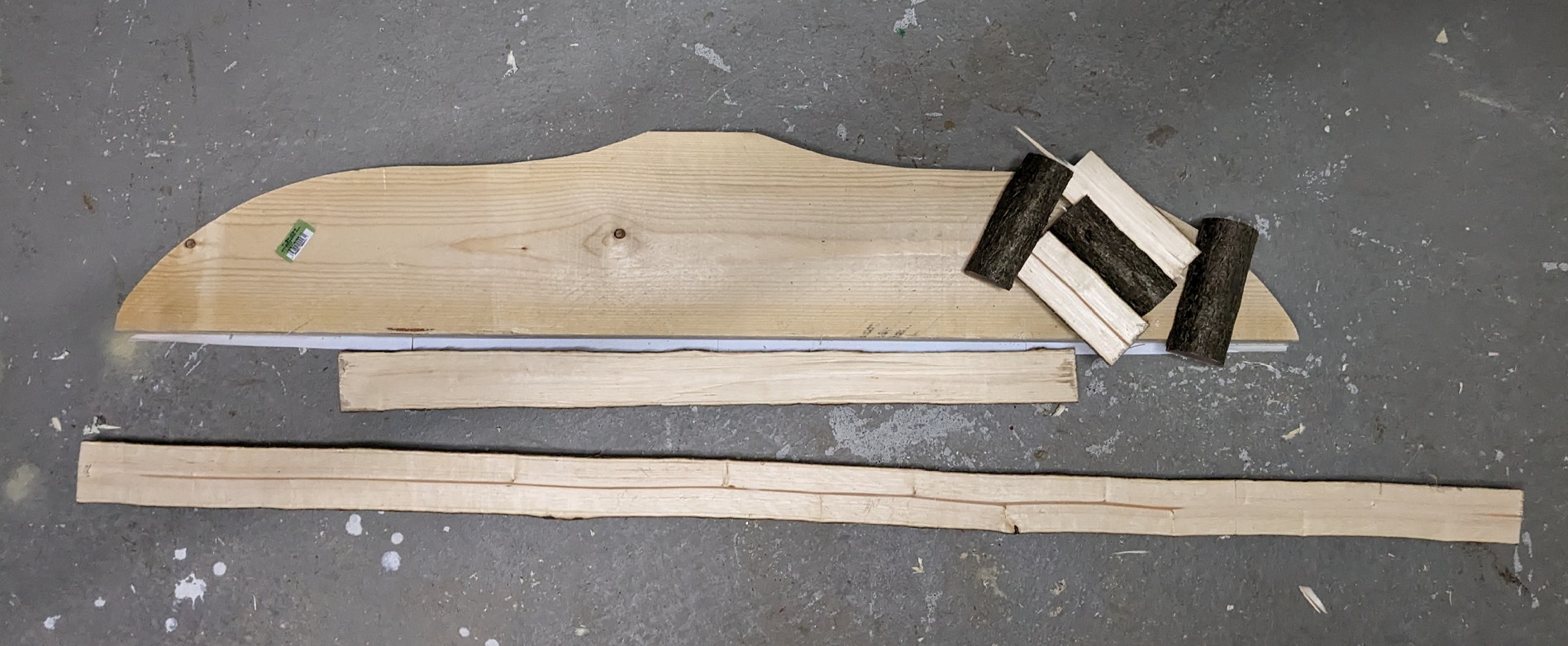 Dann Hasel Nummer 2 auf 125cm abgesägt und den Bauch abgespalten. Zum Schluss habe ich das Profil grob ausgearbeitet.