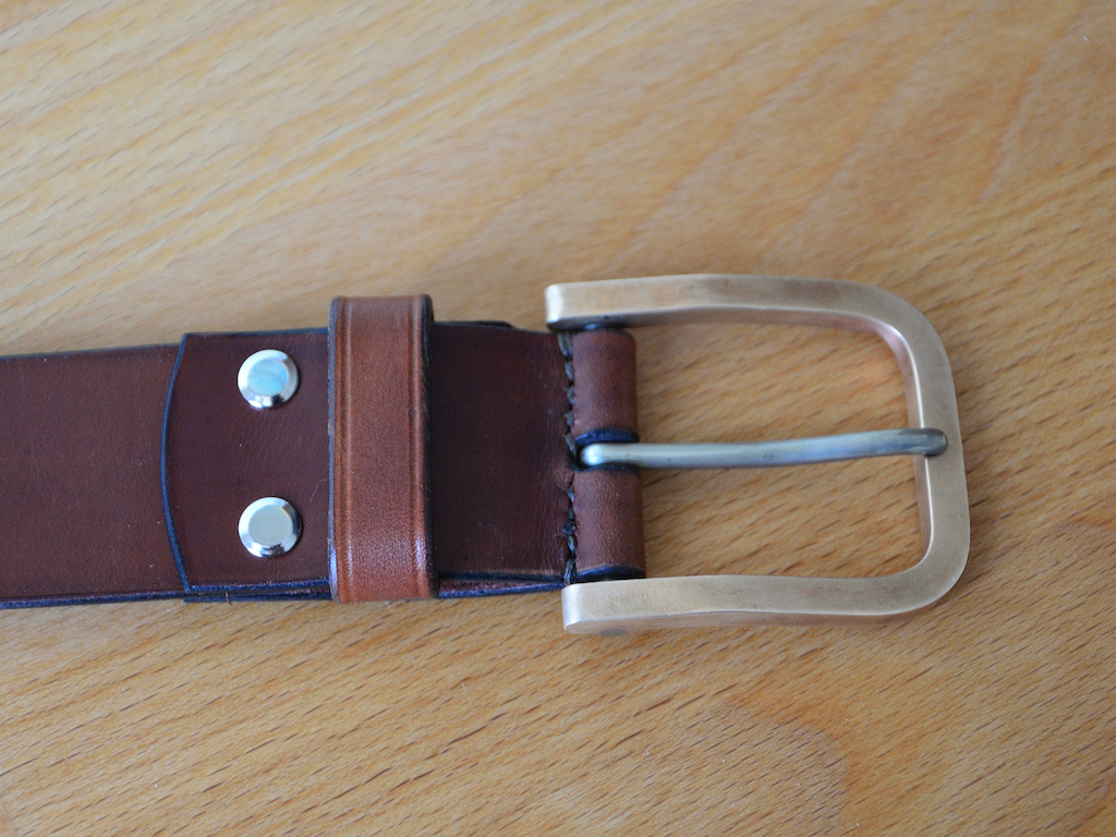 Materialien der Schnalle: Bronze, Neusilber und Edelstahl. Leder 3mm, vegetativ gegerbt von der Kuh. Gefärbt in spanisch Braun mit schwarzen Kanten