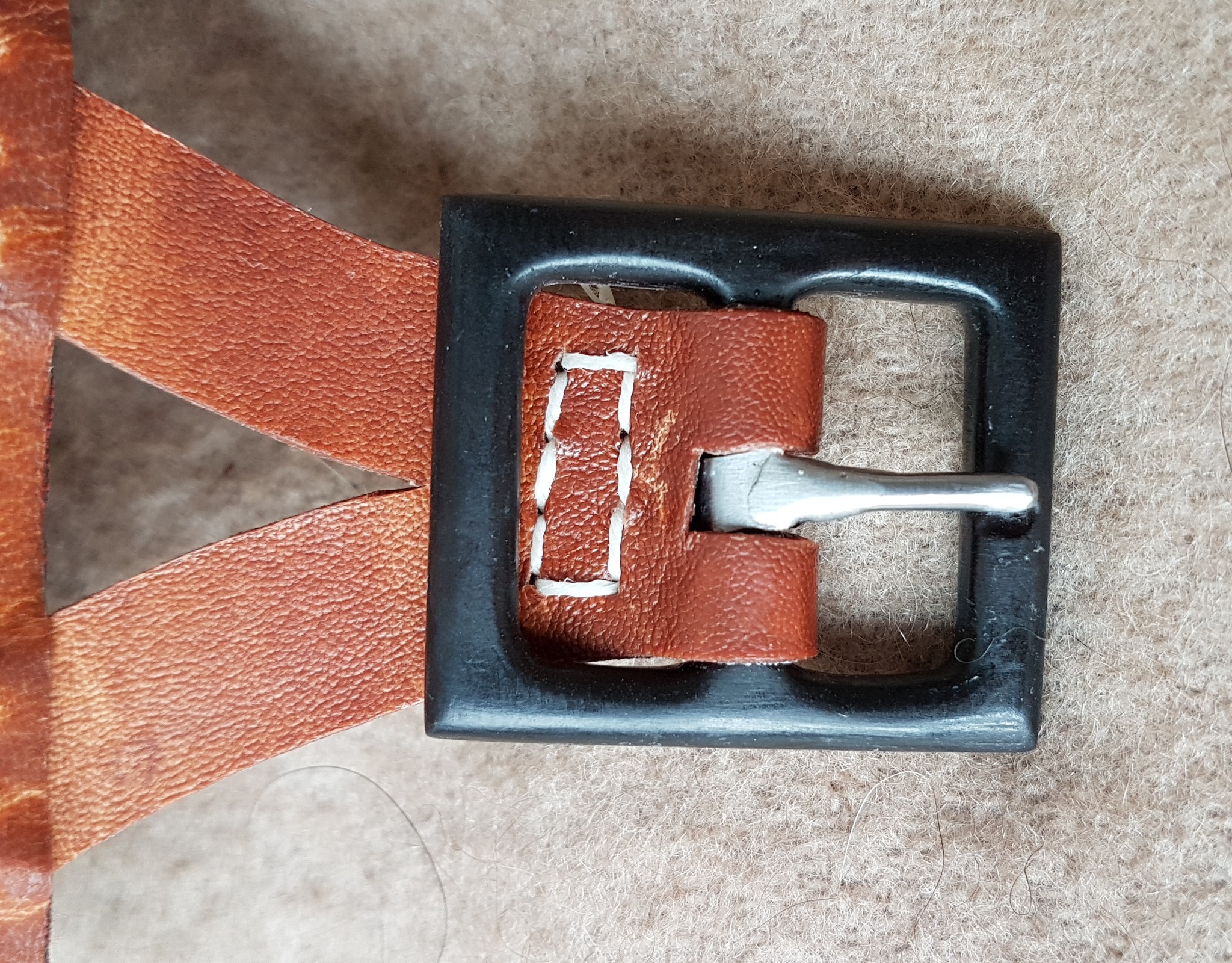 - die Schließe habe ich aus Horn und den Dorn aus einem Nagel gemacht.