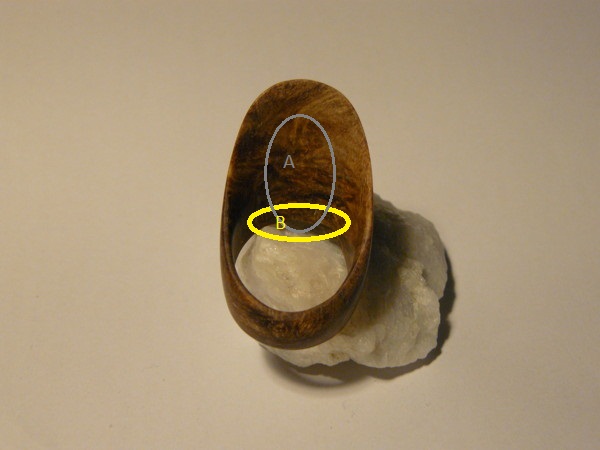 A kann ich nicht viel weiter wegnehmen (ist schon recht dünn). Zwicken tut es eher an der Stelle B (zwischen Ring und Gelenkfalte). Ich hatte schon dran gedacht, dort etwas Material wegzunehmen, so dass die Gelenkfalte etwas mehr Platz hat. Eventuell versuche ich es auch mit einem Lederschutz.