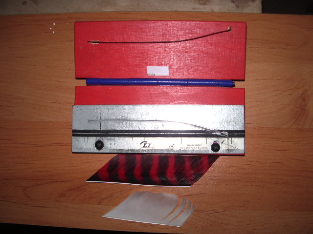 Meine ersten vier Sätze Pfeile. Die ersten zwei noch ohne Befiederungsgerät, aber mit Befiederungsgerät stimmt der Winkel einfach. 5° Abweichung sieht man nämlich schon viel zu deutlich am Pfeil. Sie fliegen aber alle recht gut