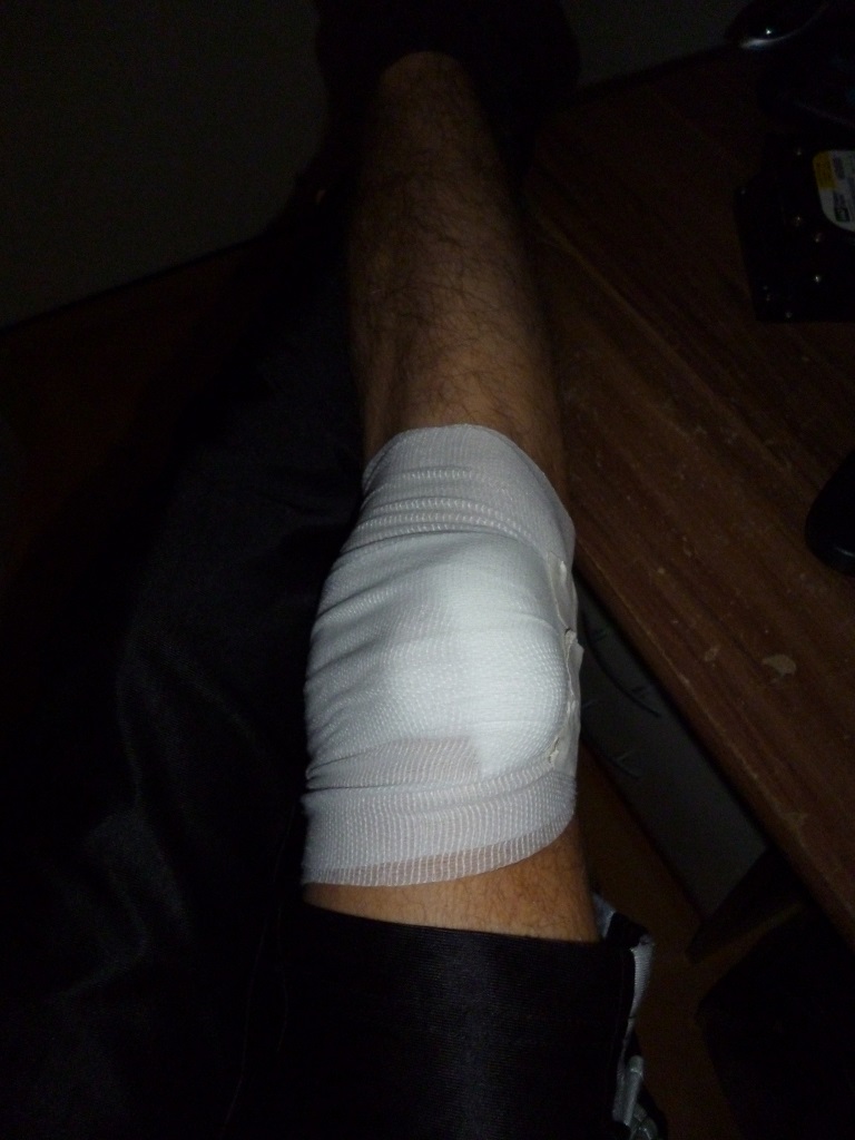 Ja doof aber auch dass ich mir nicht die Hose aufgerissen habe sondern der Ast mir den Arm samt Beil in der Hand gegen mein Knie geschlagen hat. Hose hoch gekrämpelt und meine Kniescheibe gesehen. Yuppi! Eine Hälfte haut links, eine rechts und ein wunderbar glatter Schnitt bis auf den Knochen in der Mitte.