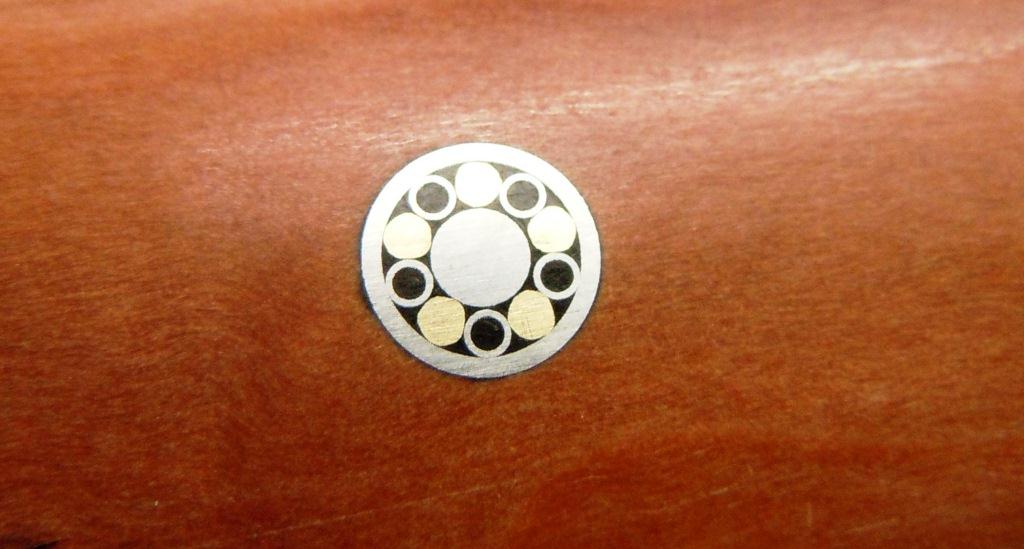 Griff: stabilisiertes Birnenholz (nein nicht aus einer meiner Chargen, dieses Holz habe ich stabilisieren lassen), schwarzes Fiber, Corby Nieten aus Edelstahl und ein Mikropin