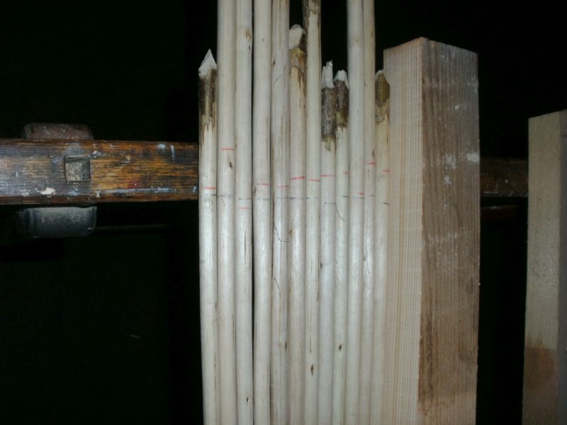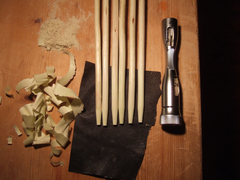 Die anderen wurden grob geschliffen und gerichtet und auf 7mm Durchmesser am Nock-Ende abgelängt.