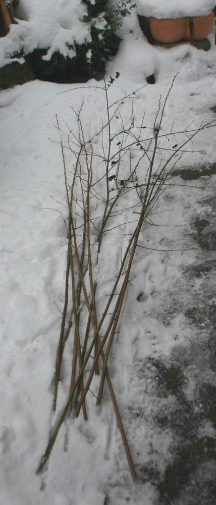 Letztes Wochenende habe ich den Korkenzieherhasel von Oma geplündert. Die geraden Wurzeltriebe waren richtig schön