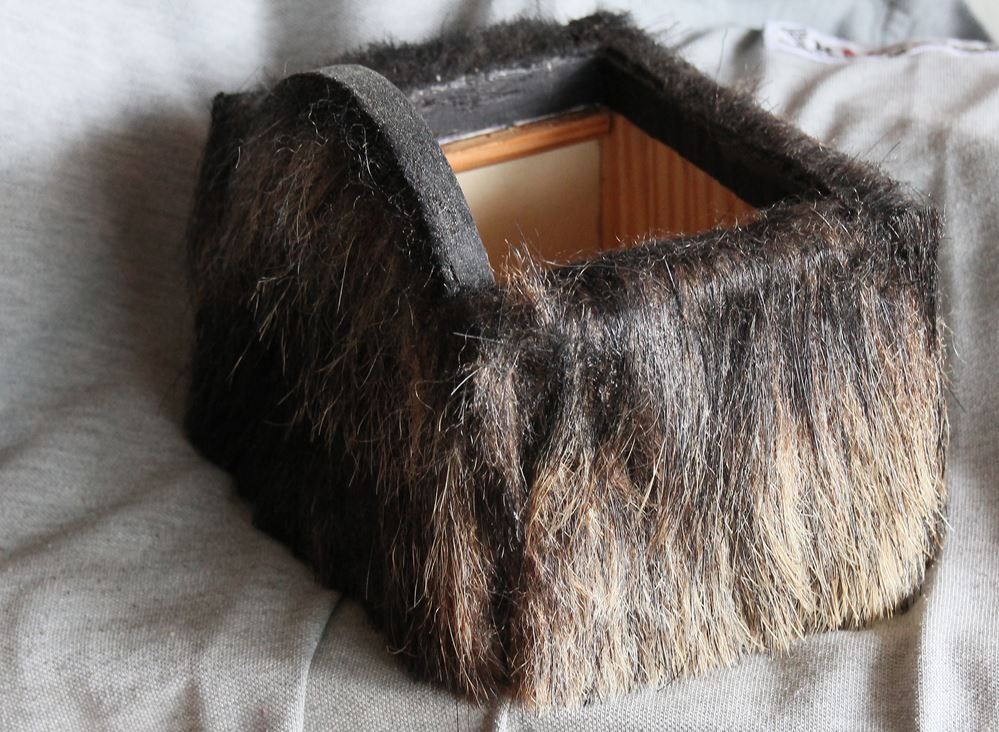Mit dem nächsten Bauabschnitt muß mann sich entscheiden den Korpus zu lackieren oder wie bereits angesprochen in diesem Fall sehr archarisch mit Wildschwein-oder Bärenfell zu umgleiden. Ich habe mich für das Wildschweinfell entschieden.