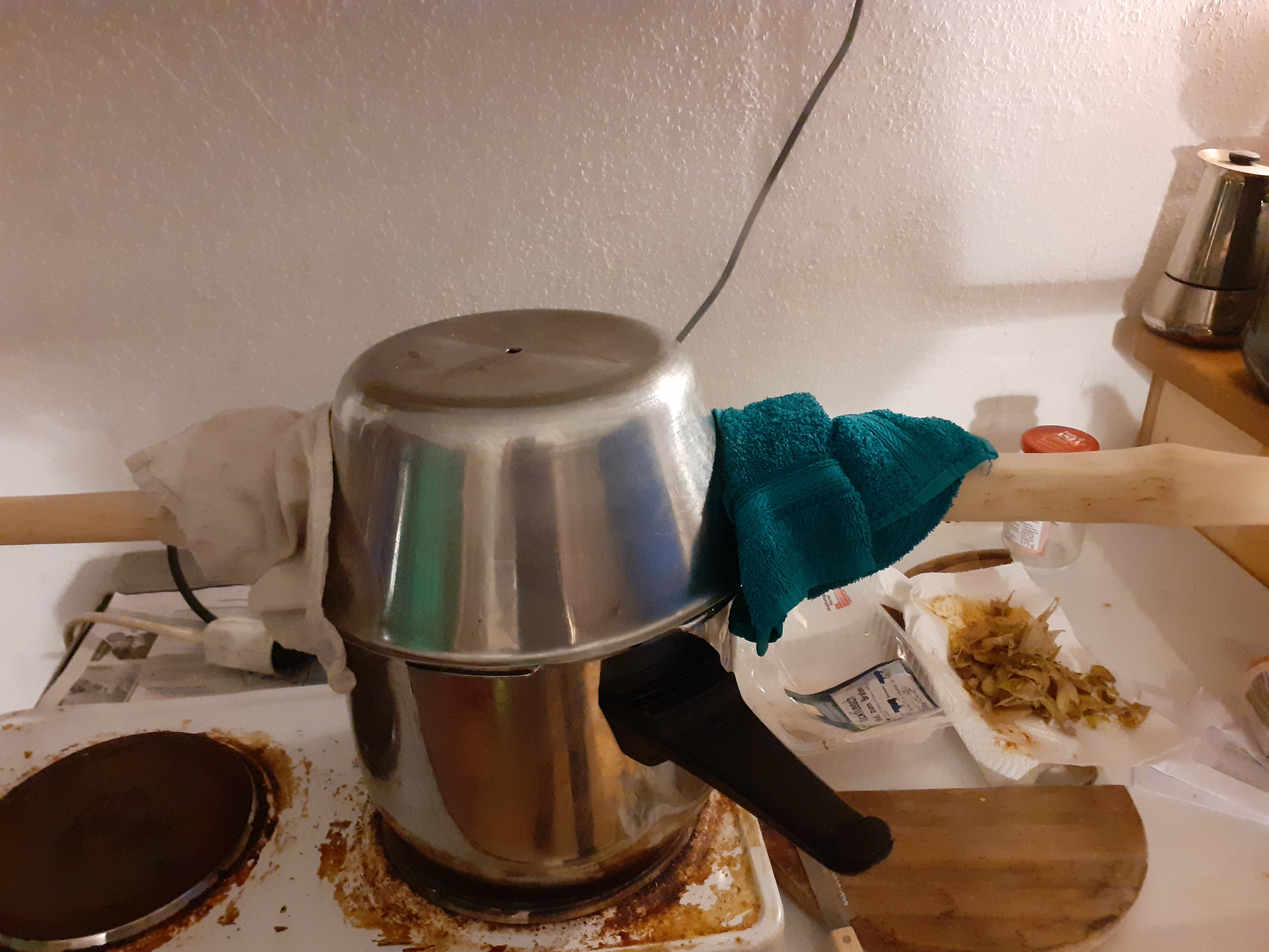 Deswegen geb ich ihm noch ne Extra-Halbestunde im Heißdampf, 3x3cm Kornelle müssen richtig durchgewärmt werden.