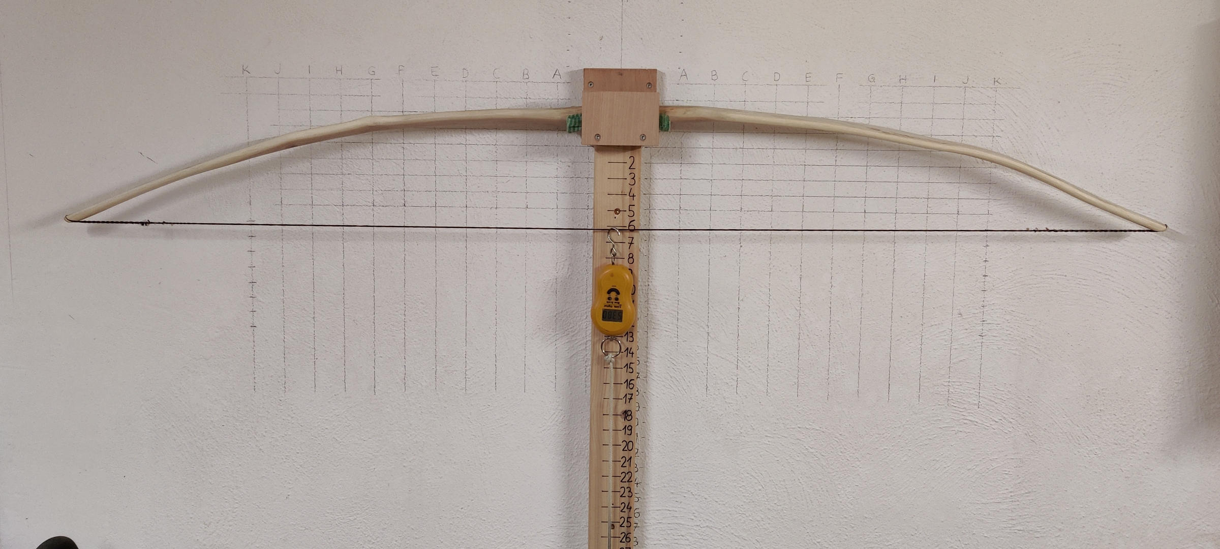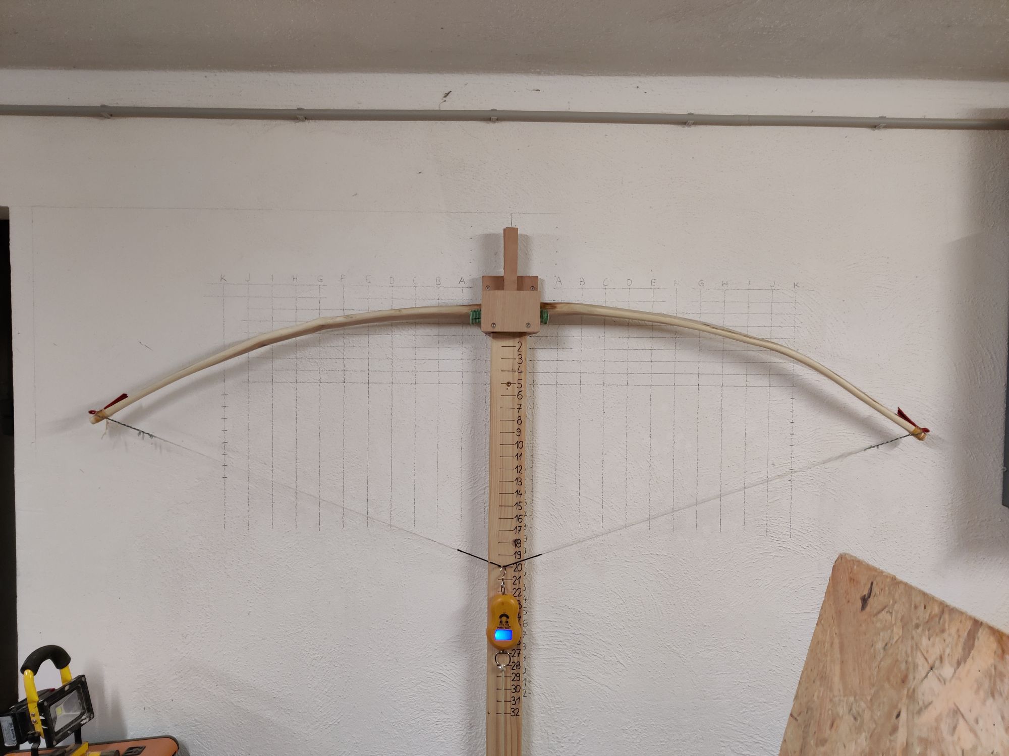 Heute hab ich provisorische Nocken angebracht und mal etwas an der Sehne gezogen. Ich denke so ein Bogen lässt sich am besten beurteilen wenn man eine gerade über den abgespannten Bogen legt und dann mit der Ellipse am ausgezogenen Bogen vergleicht was rechts und links der Linie abweicht. Ich würde sagen der obere sieht gut aus und der untere ist vom Fadeout bis E noch etwas zu steif.