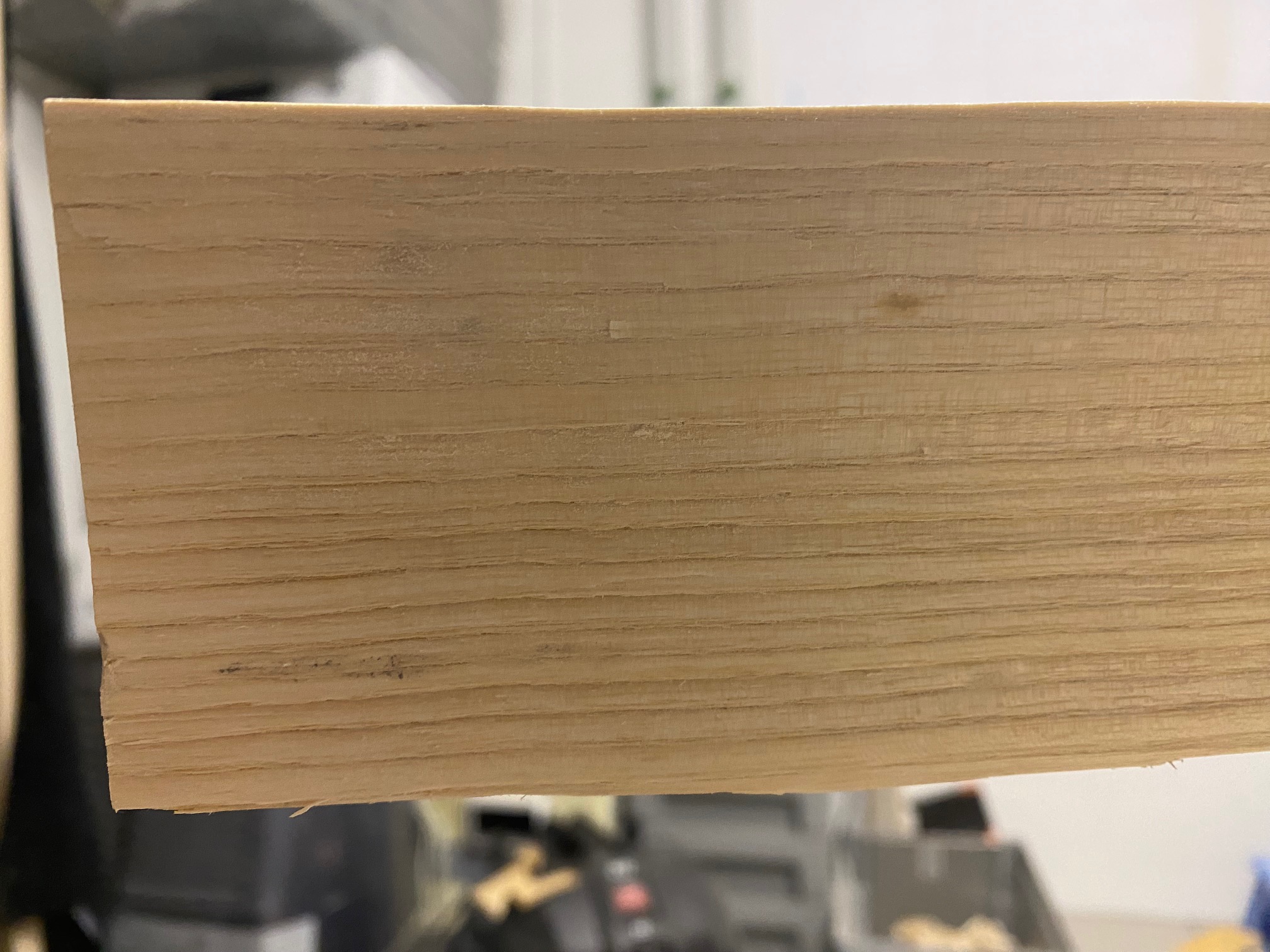 Diese roten Bereiche sind wie Inseln, da hat das Holz wie eine feine Einbuchtung, mit dem Ziehmesser gleite ich darüber und mit der Ziehklinge habe ich das Gefühl, zu verkanten und dann wieder zu weit reinzuschneiden resp zu kratzen