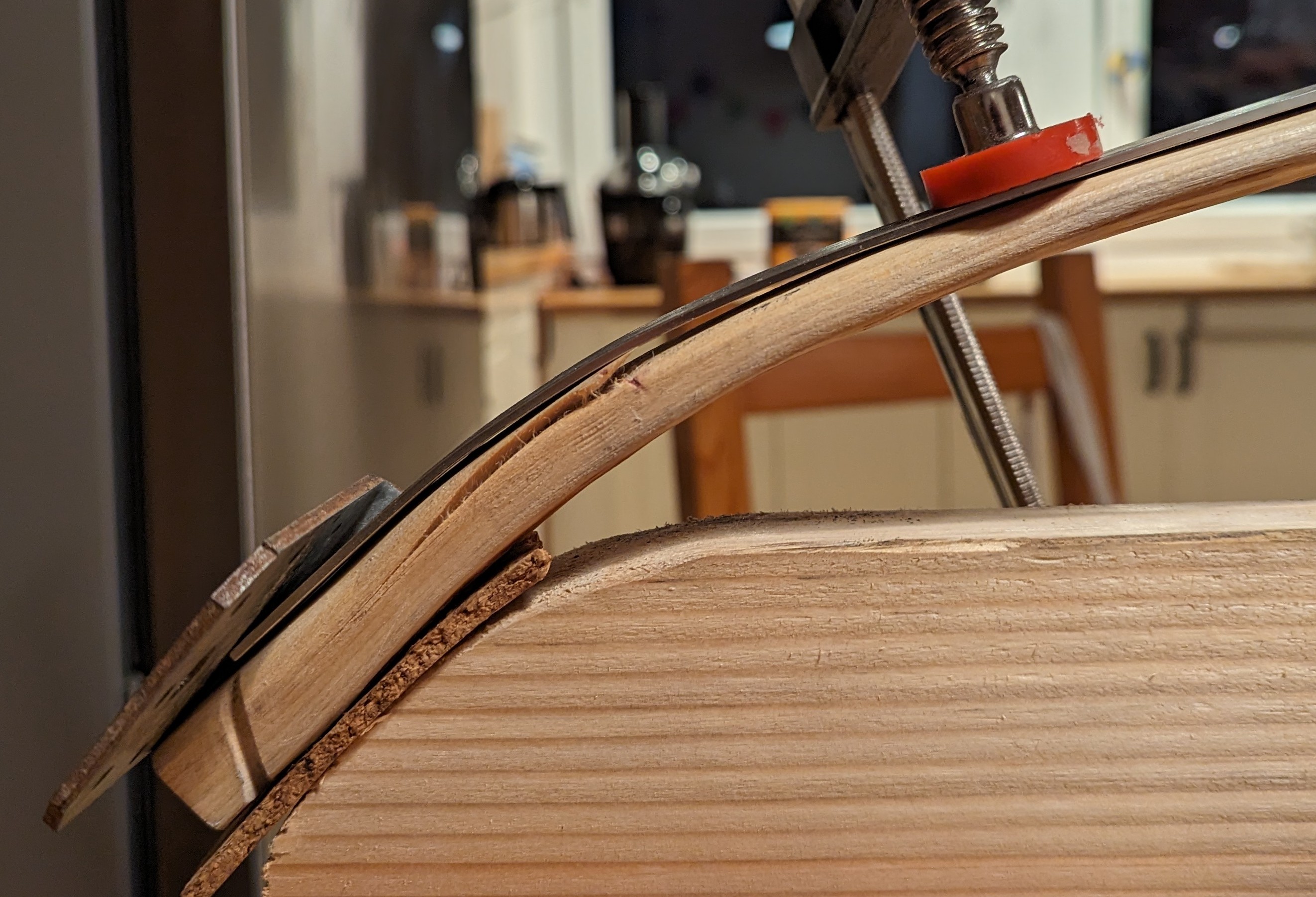 Durch die Deflexe Stelle am rechten Tip komme ich wohl momentan nicht über vielleicht 23 Zoll. Deswegen er gerade auf dem Herd steht. Über Meinungen zum Tiller würde ich mich freuen