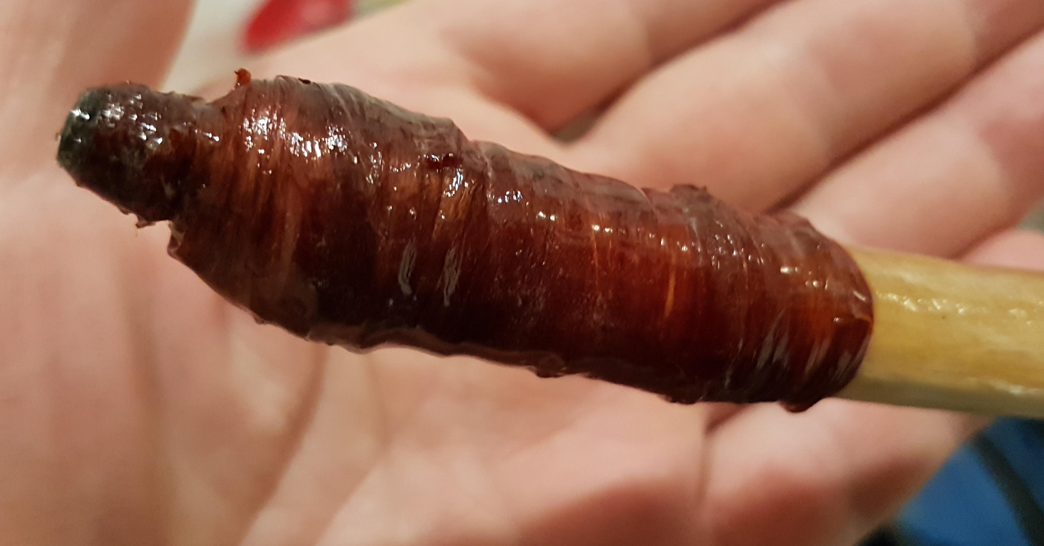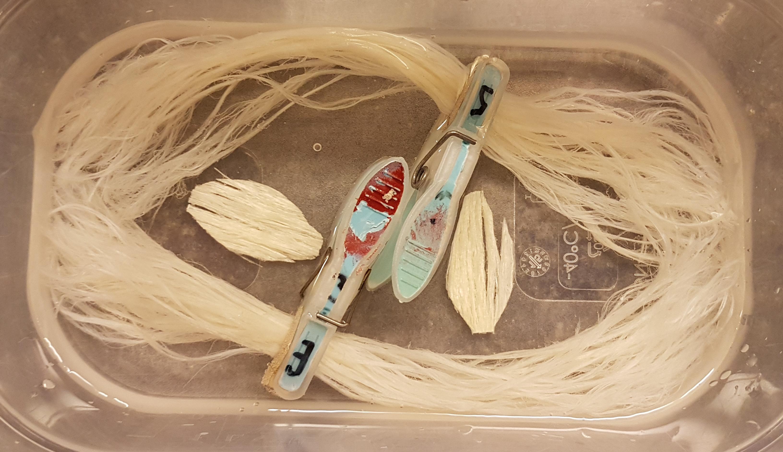 Dann etwas Glutinleim erhitzt und die neuen Horndübel eingeklebt.