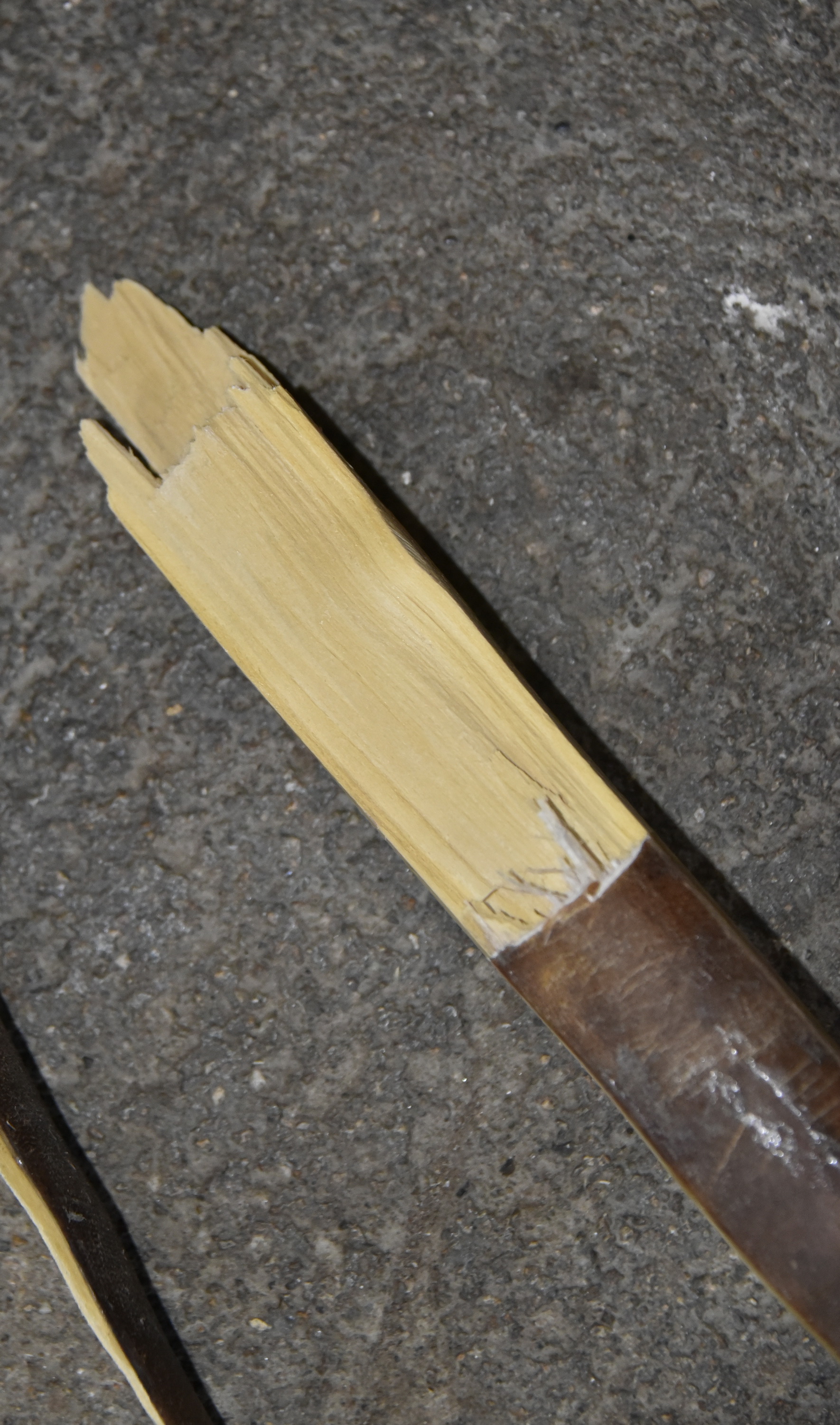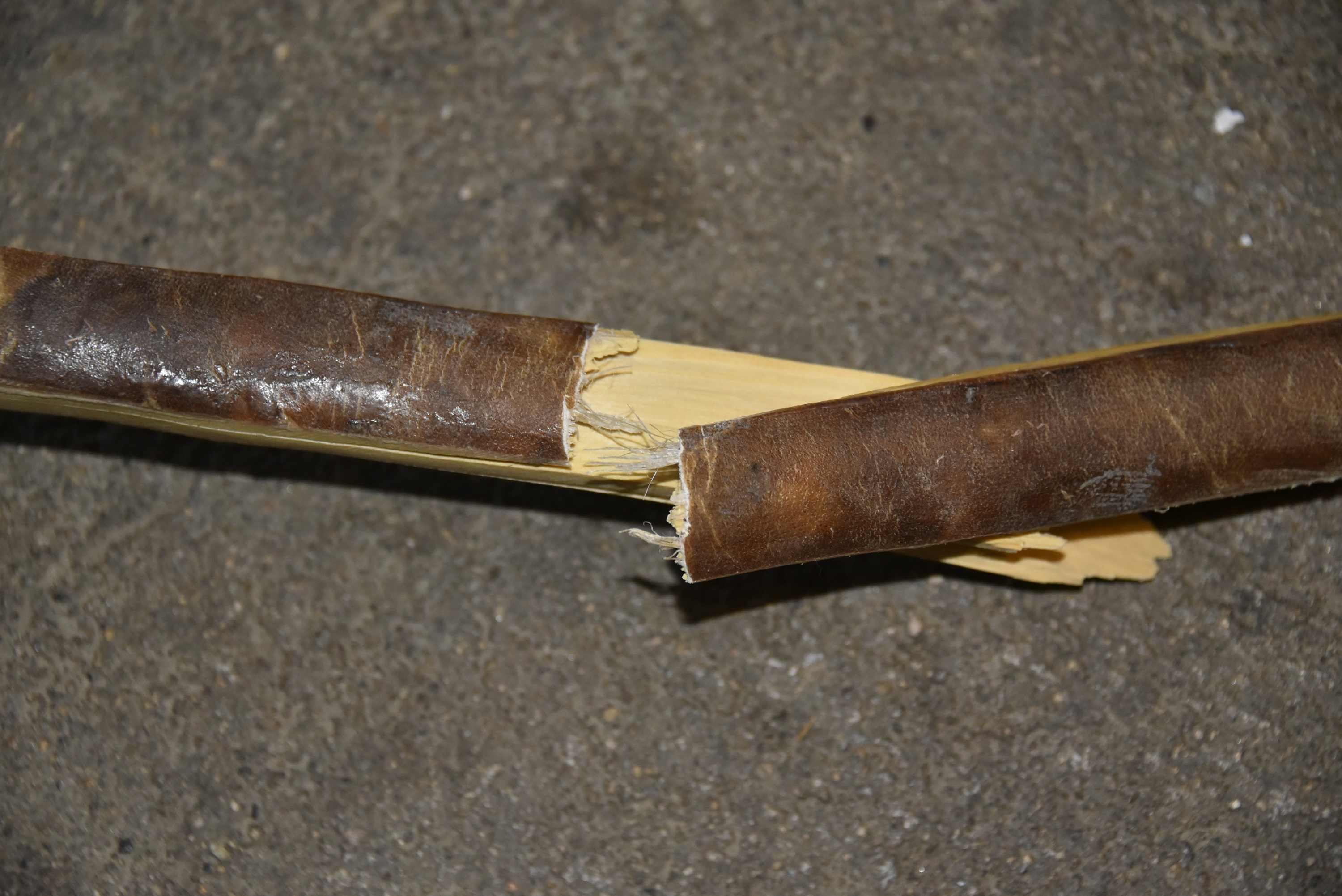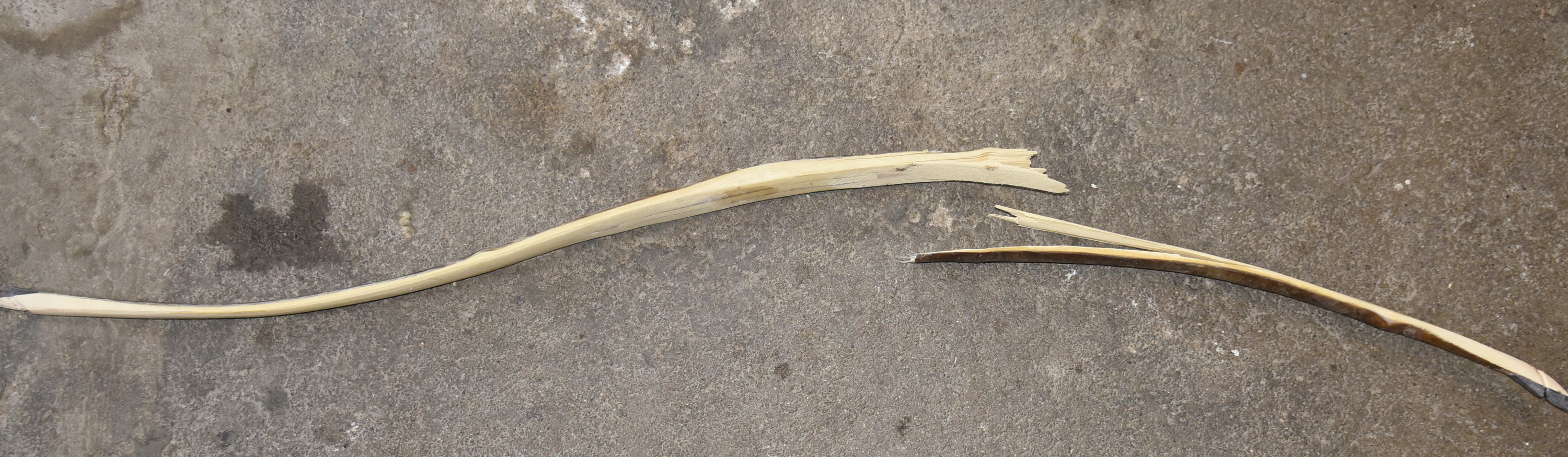 Oje, schade! der Bogen war eigentlich auf einem guten Weg, ich glaube er war zu stark und die Rohhaut nicht die Beste.