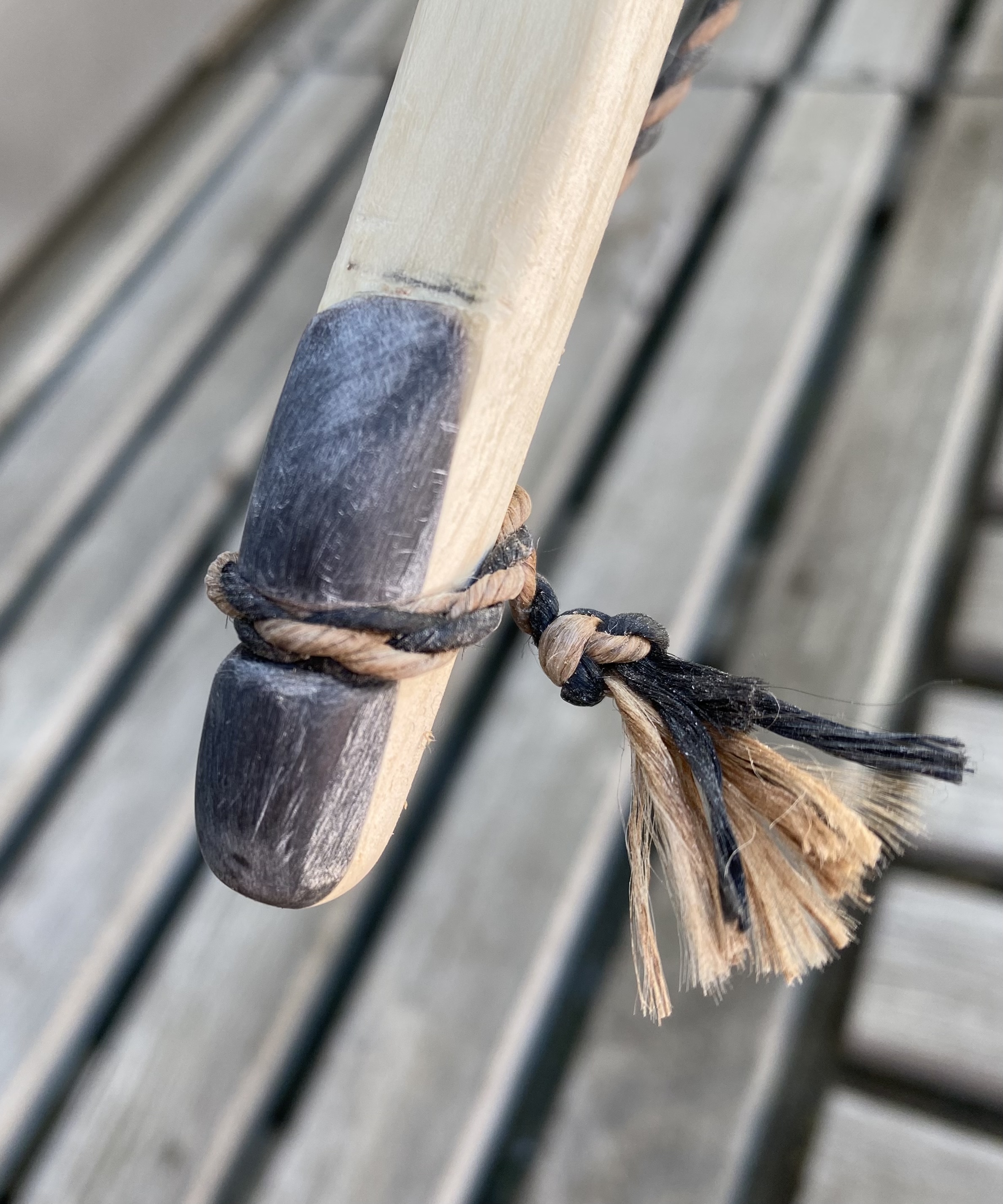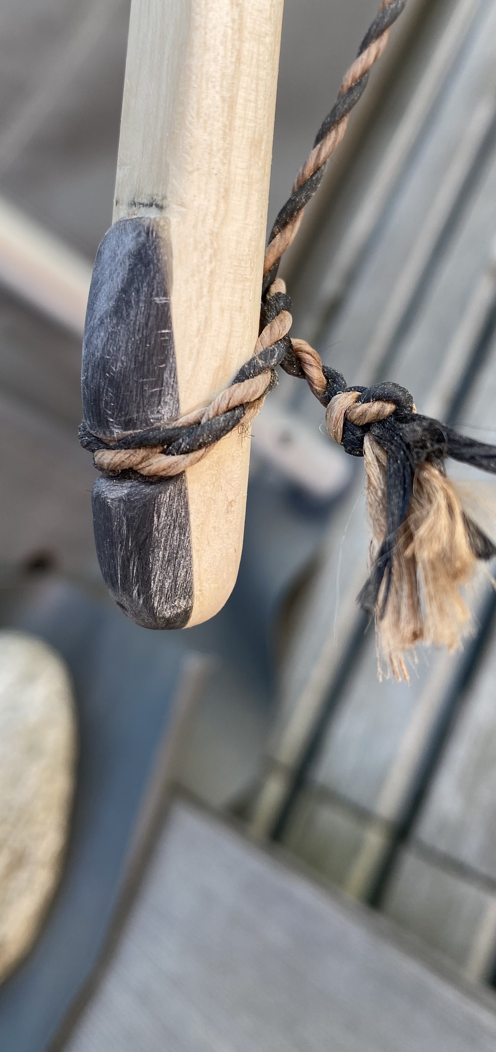 Mach irgendwie eine Spitze vorne drauf, die muss nicht spitz sein, sie soll den Pfeil nur schwerer machen..