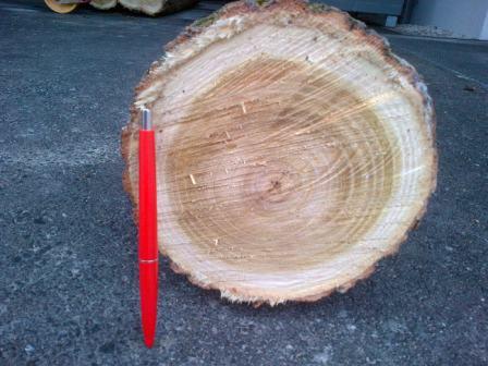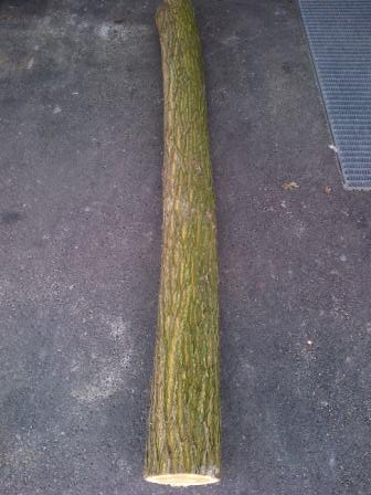 Ím speziellen geht es um diesen Stamm auf den Fotos: leicht gebogen, ein leichter Riss zeigt sich an der Stirnseite.