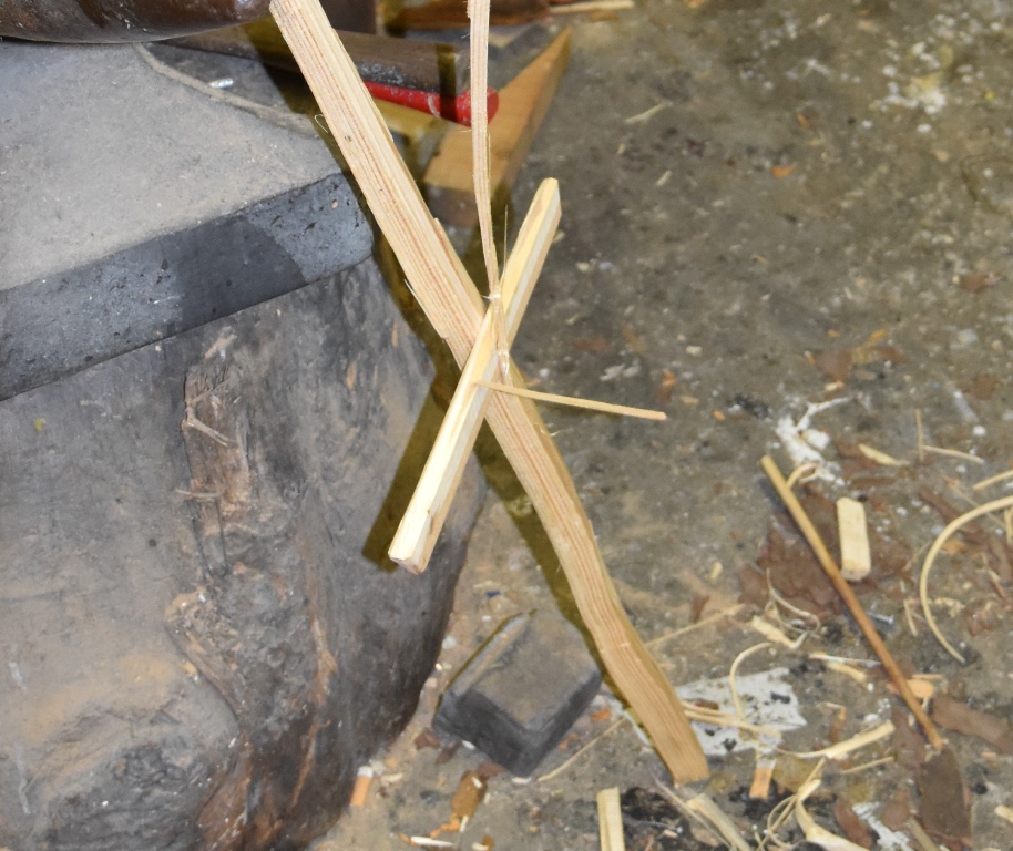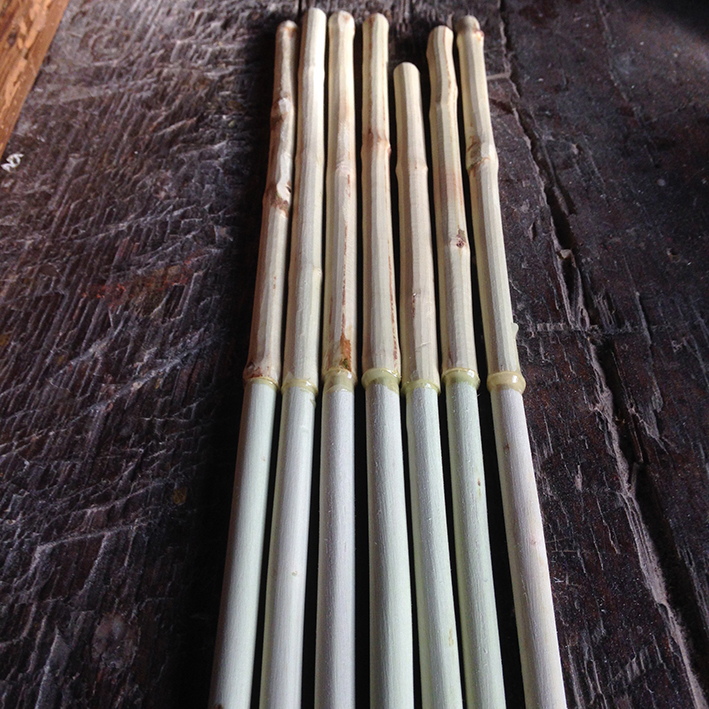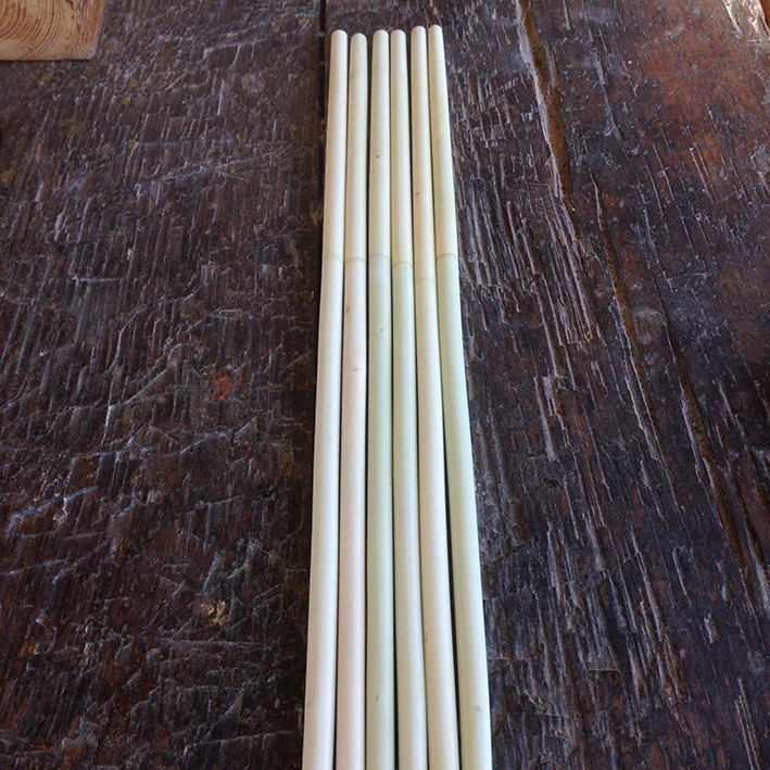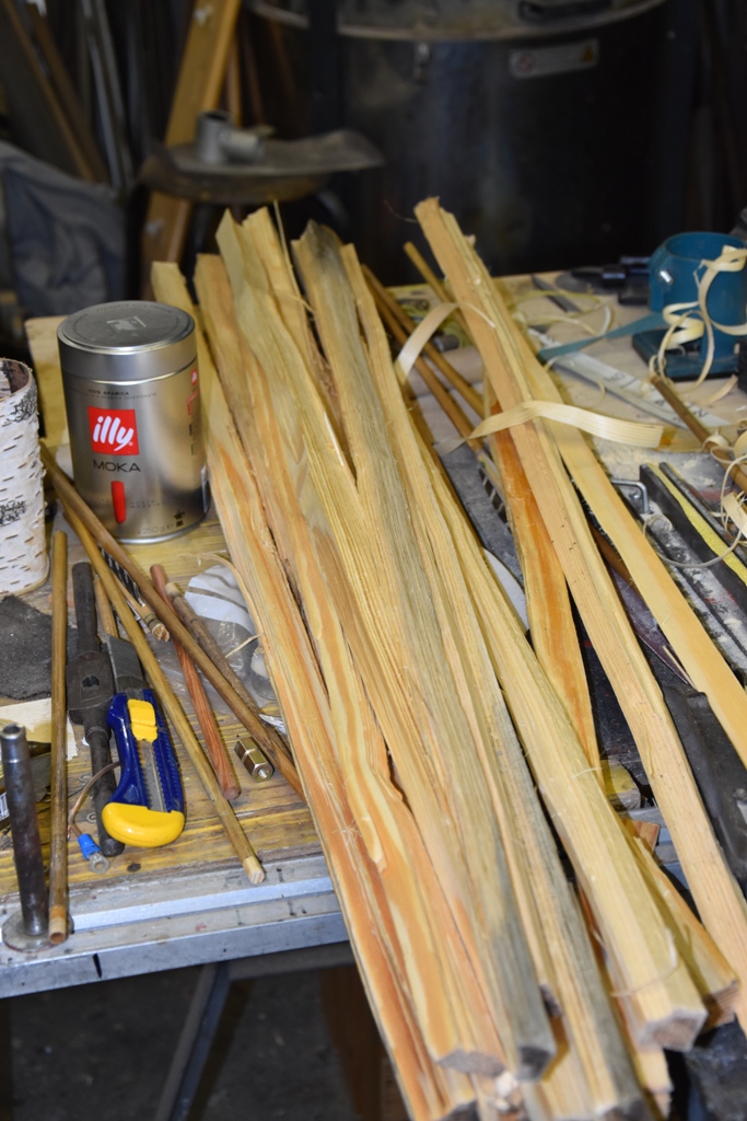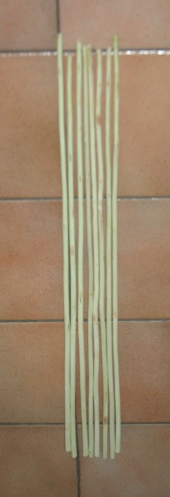 Auch bei mir ging es Anfang der Woche weiter. Ich habe die Pfeilsaplinge der Schnürung entnommen und die schönsten Haselschösslinge herausgesucht. 8 Stück waren relativ gerade und es lohnte sich, diese mit der HLP nur mal grob zu richten.