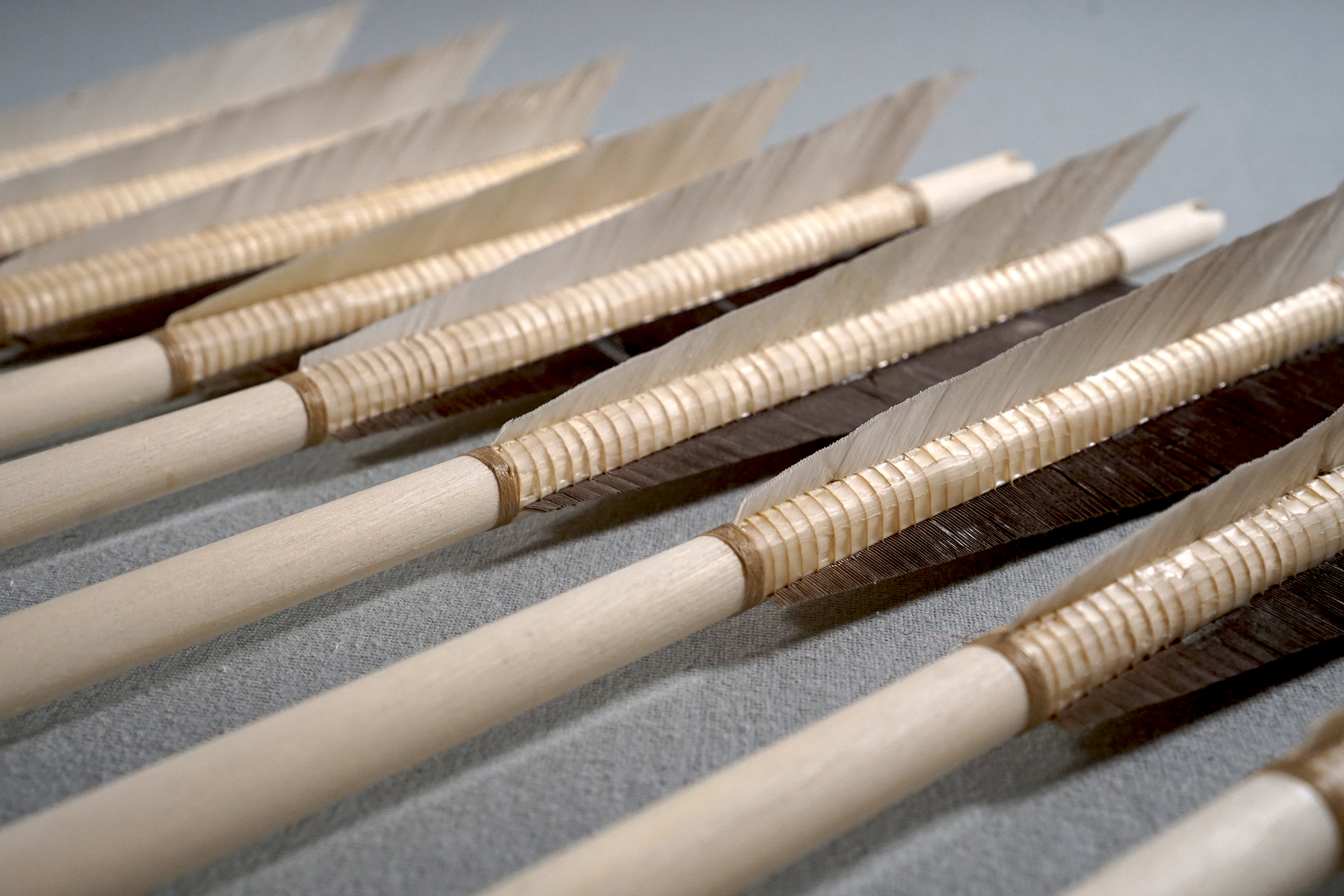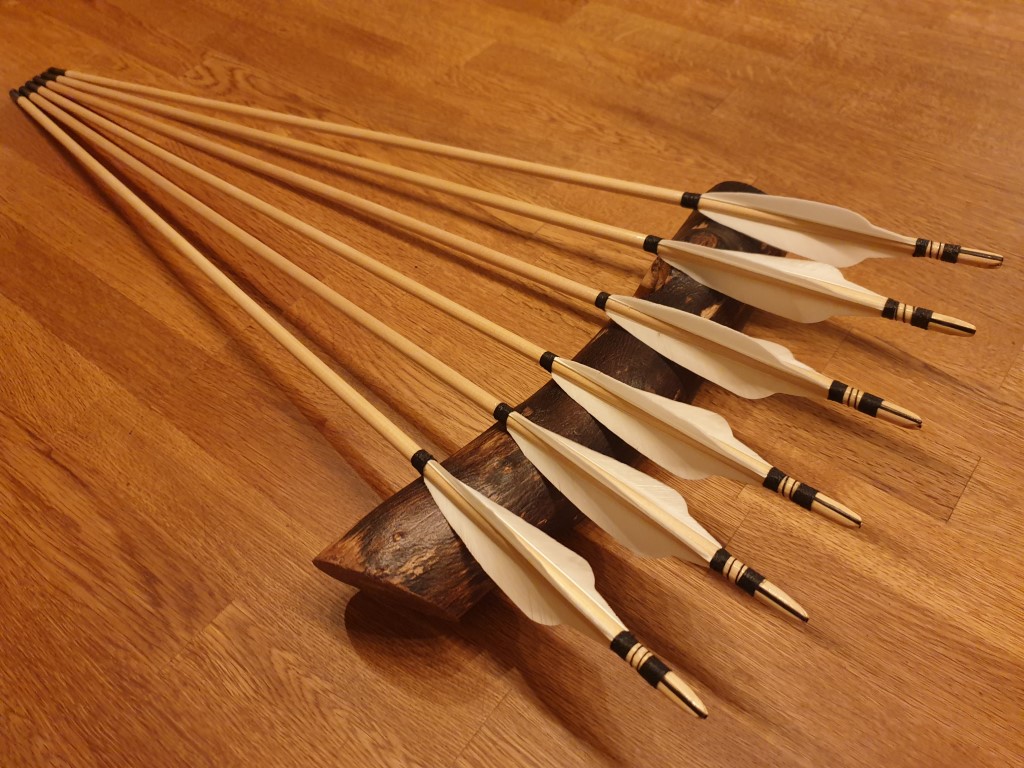 Pfeile des 14. Jahrhunderts zu rekonstruieren erweist sich schwierig, da wir keine archäologischen Funde besitzen, schriftliche Quellen schweigen und auch historische Abbildungen wenig Aussagekraft besitzen. Die einzige Ausnahme stellt das Wilton-Diptychon dar, das zur Jahrhundertwende entstand. Daher tappen wir im Dunkeln, wie Pfeile im 14. Jahrhundert ausgesehen haben und welche Materialien und Rohstoffen verwendet wurden. Regionale Unterschiede erlaubt es zudem nicht, eine „Art“ Pfeil zu generalisieren.