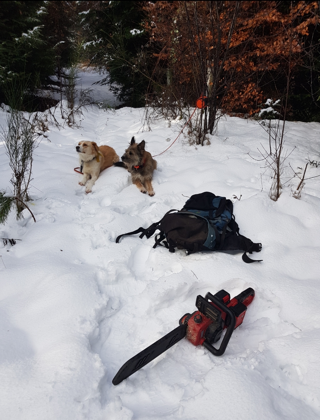 Das Bambus Rohr aus dem die Keile entstehen solllen, zwingt mich unterm Bauwagen aufzuräumen... dadurch geben alte Bogenhölzer jetzt prima warm...🙈🥰
