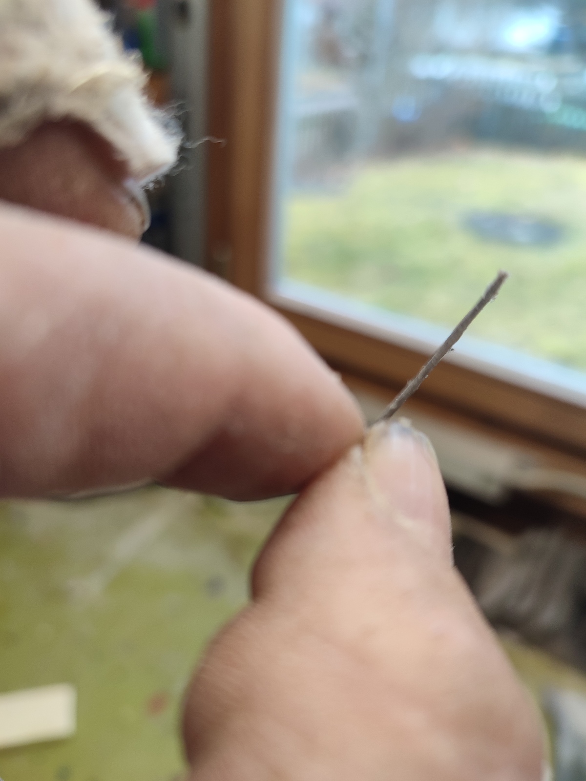 So heute konnte ich mich nicht mehr zurück halten. Nachdem der Bogen kein Gewicht mehr verloren hat , habe ich angefangen die Überstände von den Sehnen zu entfernen und den Bogen zu verschleifen. Danach habe ich in den stark Reflex Bereiche etwas Horn abgenommen, damit ich ihn einbiegen konnte. Das erste Aufspannen war erstaunlich gut und bedurfte anschließend nur noch kleine Korrekturen , bis mir der Tiller nach 1h gefiel. Danach ging es ans einschießen, erster Schuß ging glatt durch meine dicke Scheibe und durch Gartenhaus...steckte 10cm im Gartenhaus