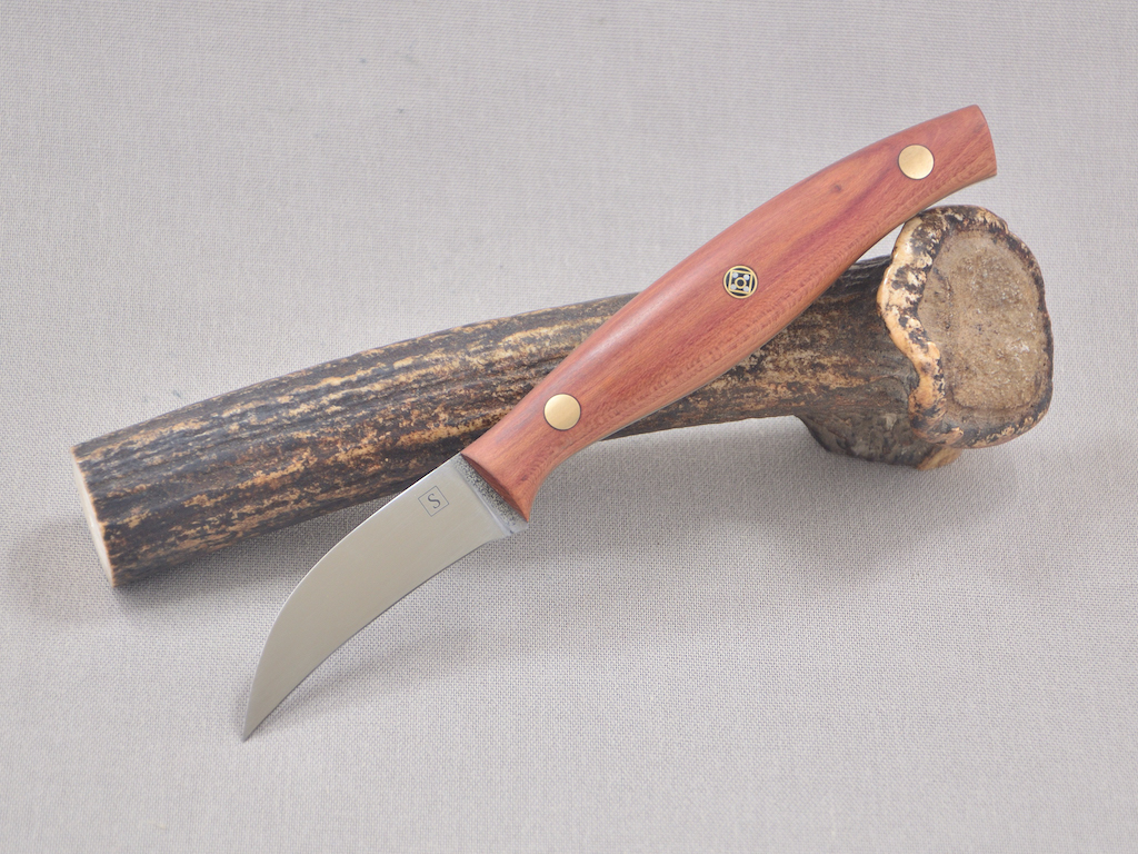 Griff: stabilisierte Zwetschge, Messingnieten und ein Mosaikpin