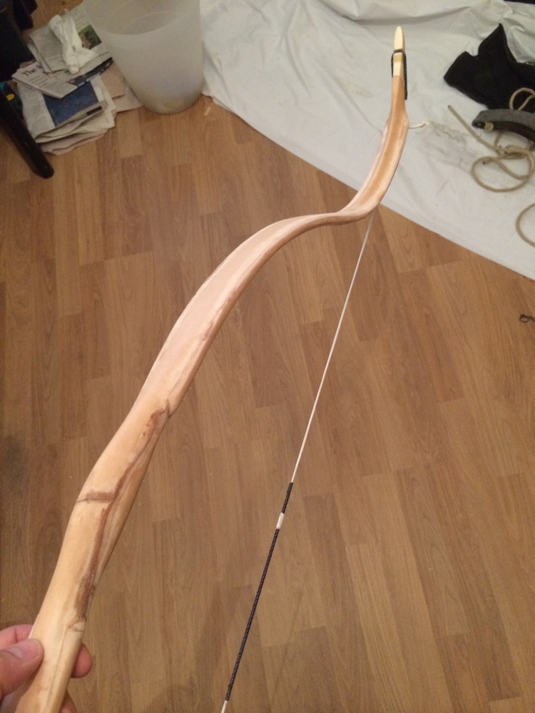 Derweil habe ich ihn mal gewogen und komme auf 310g. Auch wenn da noch Leder und Lackierung draufkommen - das scheint mir für einen Bogen dieser Länge recht leicht zu sein.
