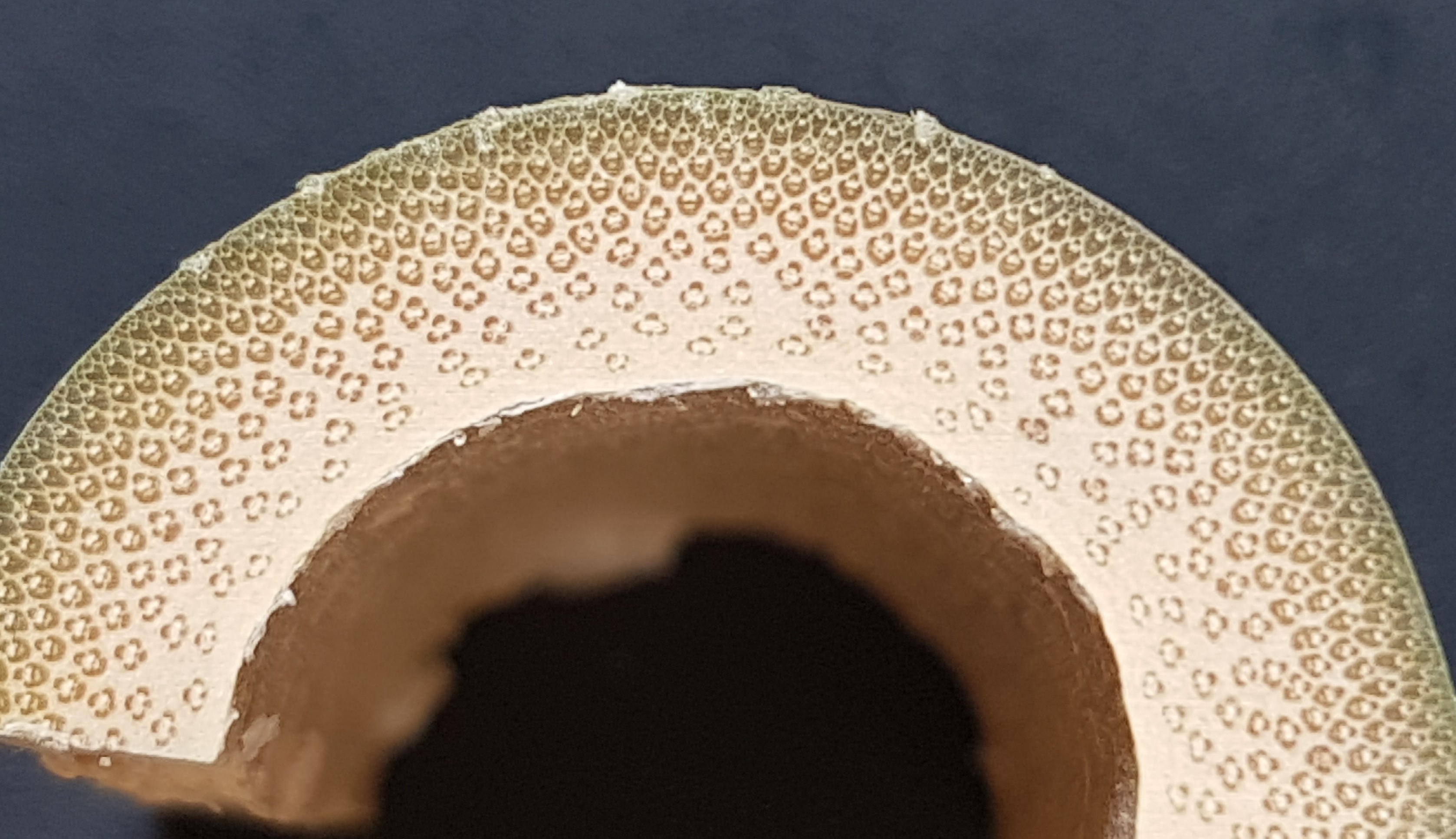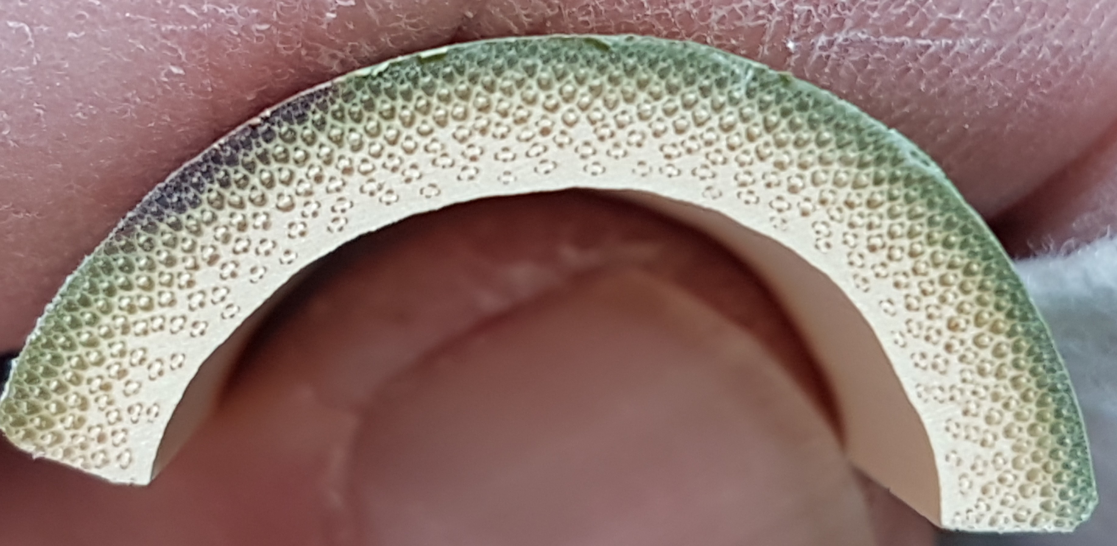 Musste erstmal nachdenken und den Fehler analysieren. Ich werde die zweite Hälfte dieser Bambus-Stange als Backing benutzen, geteilt wie zuvor. Allerdings werde ich die Bambuslage so dick wie möglich machen, auch weil mir das Zuggewicht zu niedrig war (ich schieße eigentlich keine Bogen unter 70-75#). Denn der Bambus sieht im Bereich der Internodien eigentlich ziemlich gut aus (unten nochmal Fotos). Wie und ob ich dann die Schwachstellen zusätzlich verstärke, überlege ich noch.