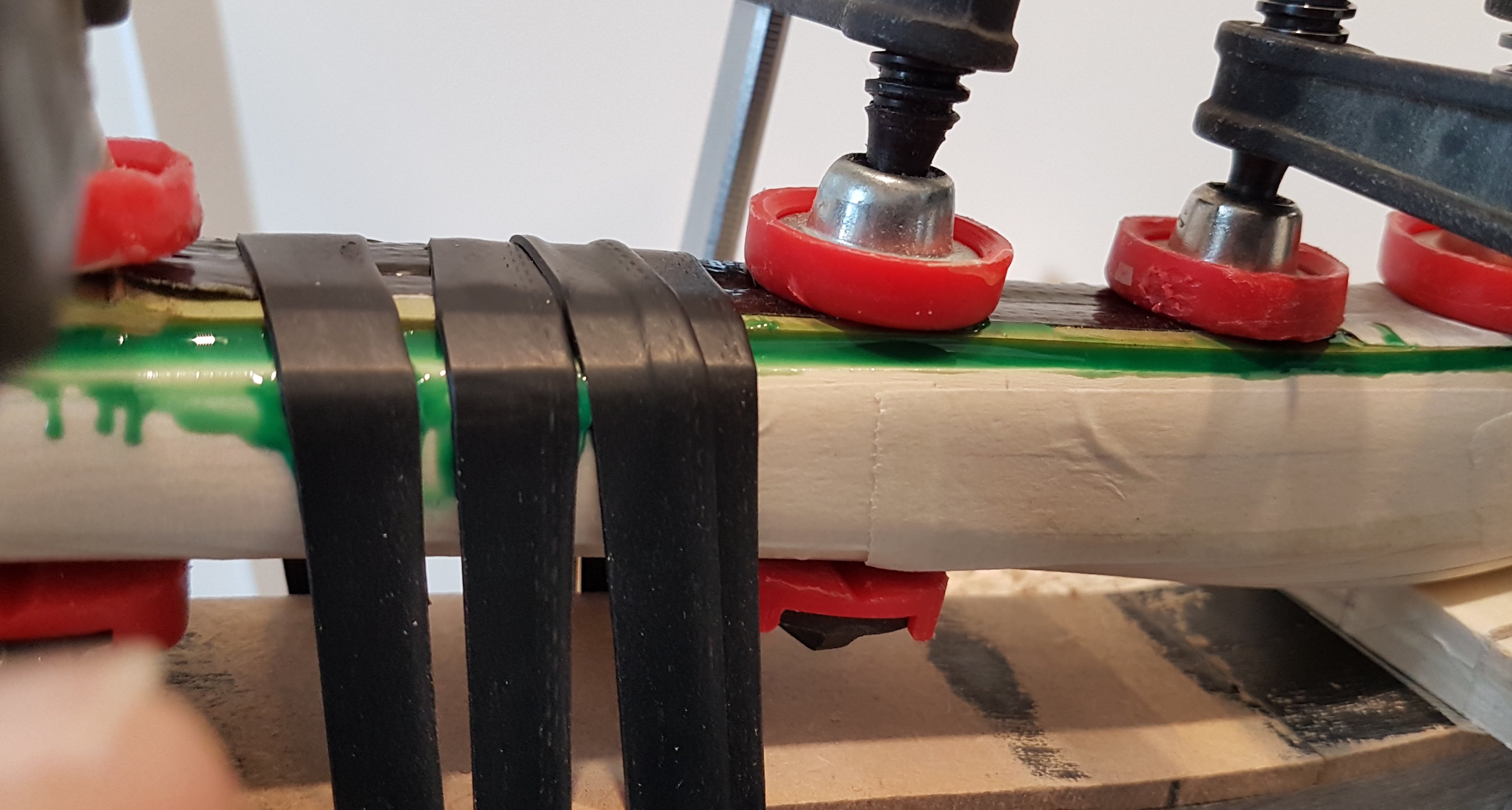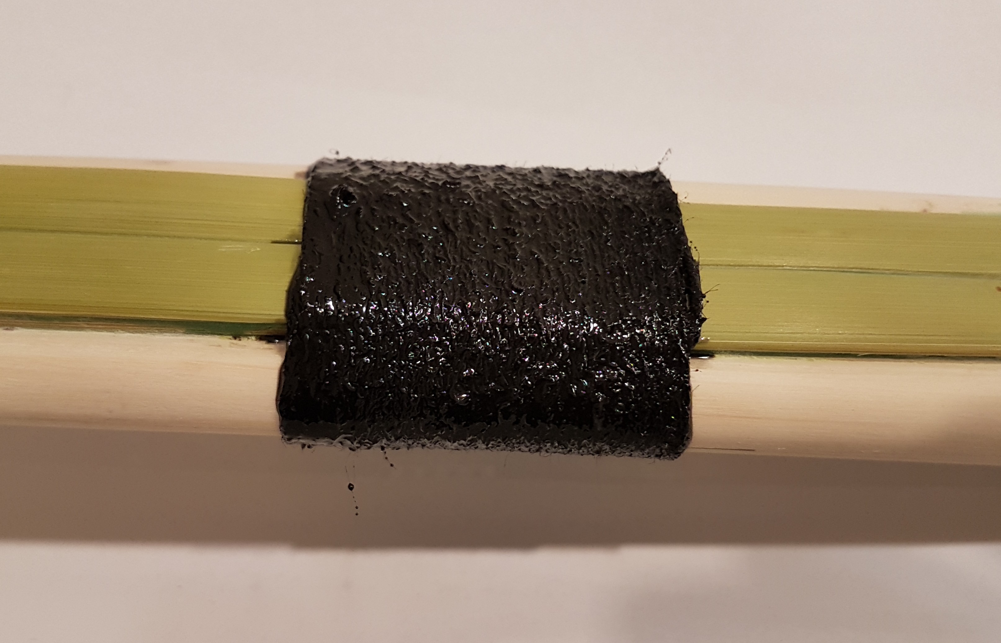Heute habe ich die aufgeklebten Bambusstreifen ausgepackt. Nie wieder werde ich einen Fahrradgummi für eine mit Epoxid geklebte Sache benutzen. Das Dreckszeug klebt zusammen mit Epoxid wie blöd