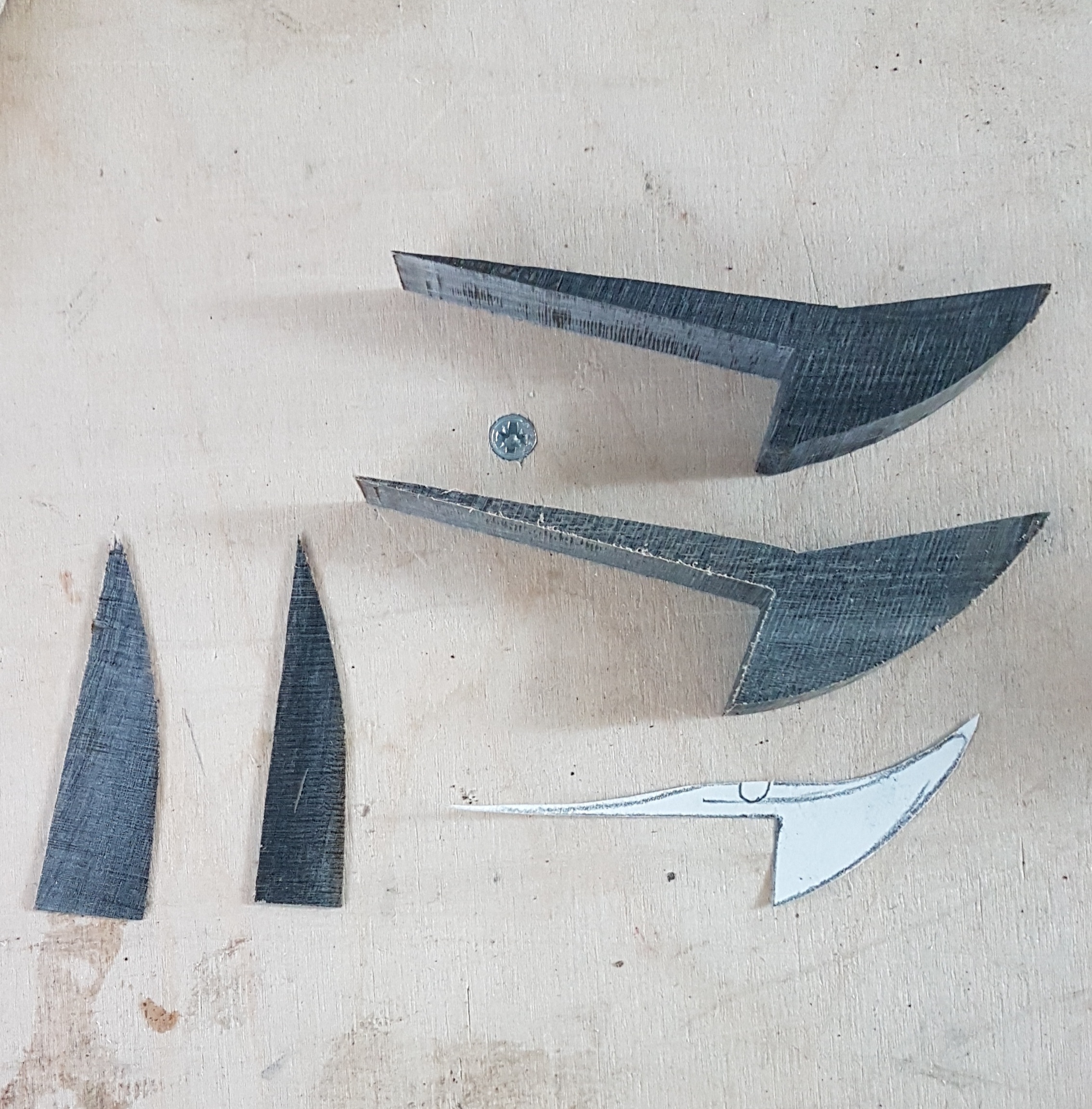 Jetzt habe ich mal noch 2 Hornteile für die Nockoverlays und 2 dünne Plättchen für einen arrowpass (1× ist Reserve. Diese dünnen Plättchen gehen beim schleifen gern mal kaputt).