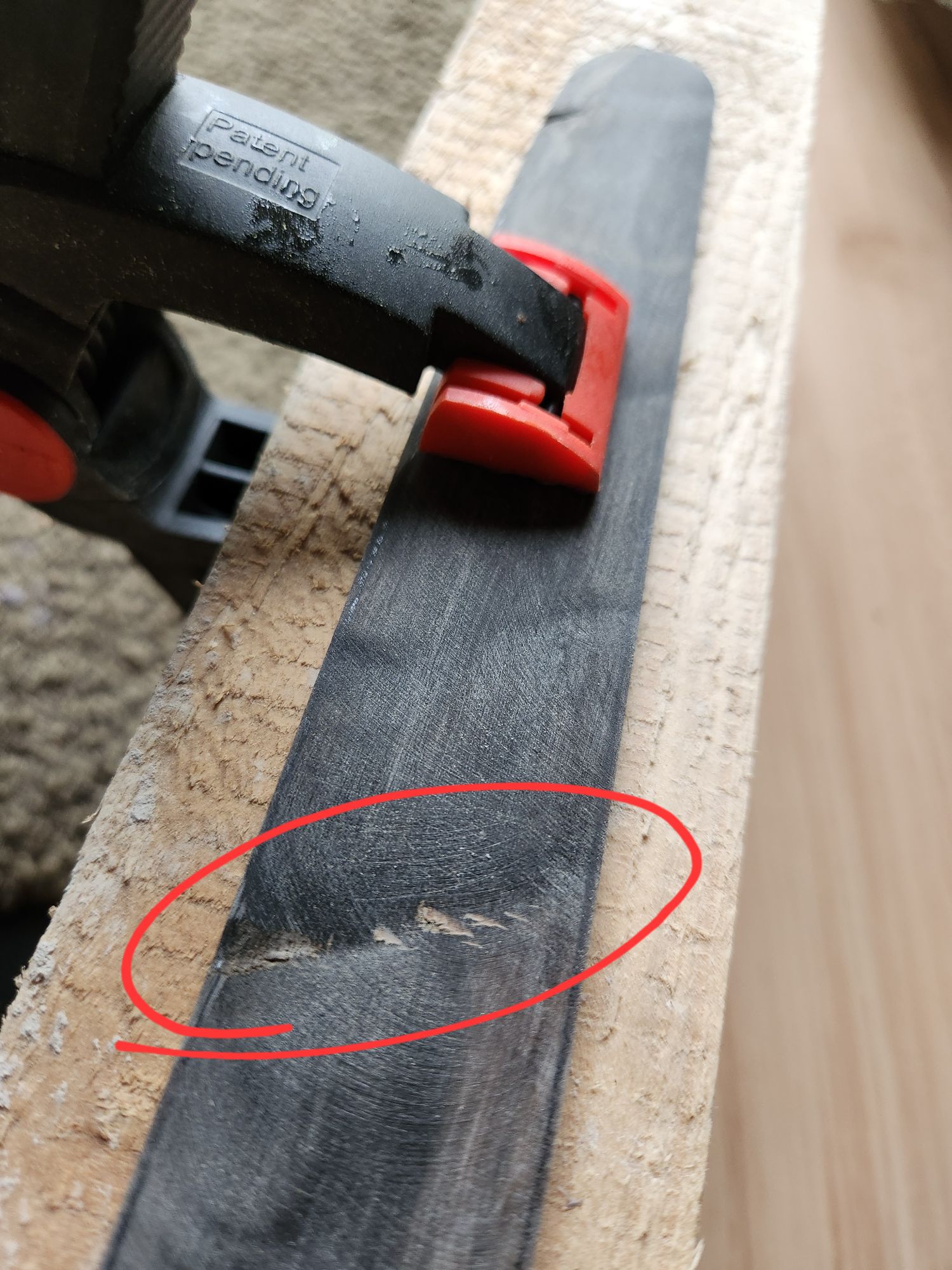 Das Horn sieht nach dem Hobel irgendwie faserig aus...kann aber täuschen. Kann es sein, dass du das Horn gegen die Faser in den Hobel geschoben hast?