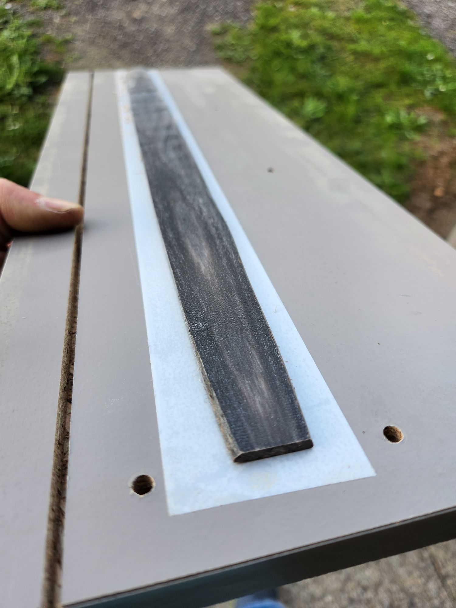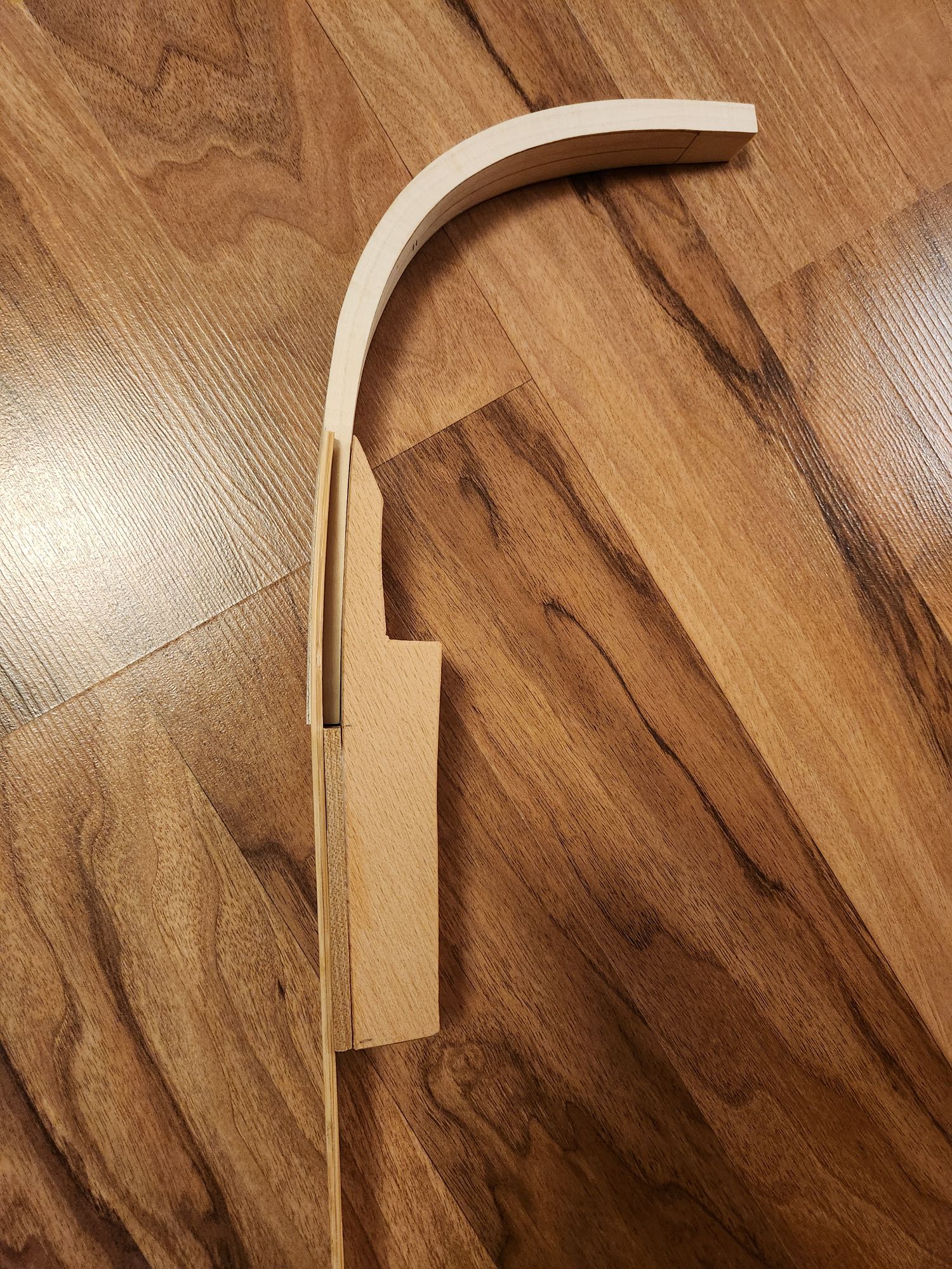 Heute ging wieder was. Ich hab den zweiten Siyah gebogen, den zweiten Hornstreifen ebenfalls und ich hab mir aus dem Abfallstück der Laminierform des ersten Bogens eine Fixierform fürs Kleben des Spleißes gebastelt. Da ich ja mit Epoxy kleben möchte will ich damit sicher gehen dass die Teile nicht aus einander rutschen. Und im Winkel ausgerichtet werden die Teile dabei auch gleich. Nur bin ich mir noch unsicher ob ich dann die Sehnenlage beeinflussen kann falls sie nicht passen sollte.