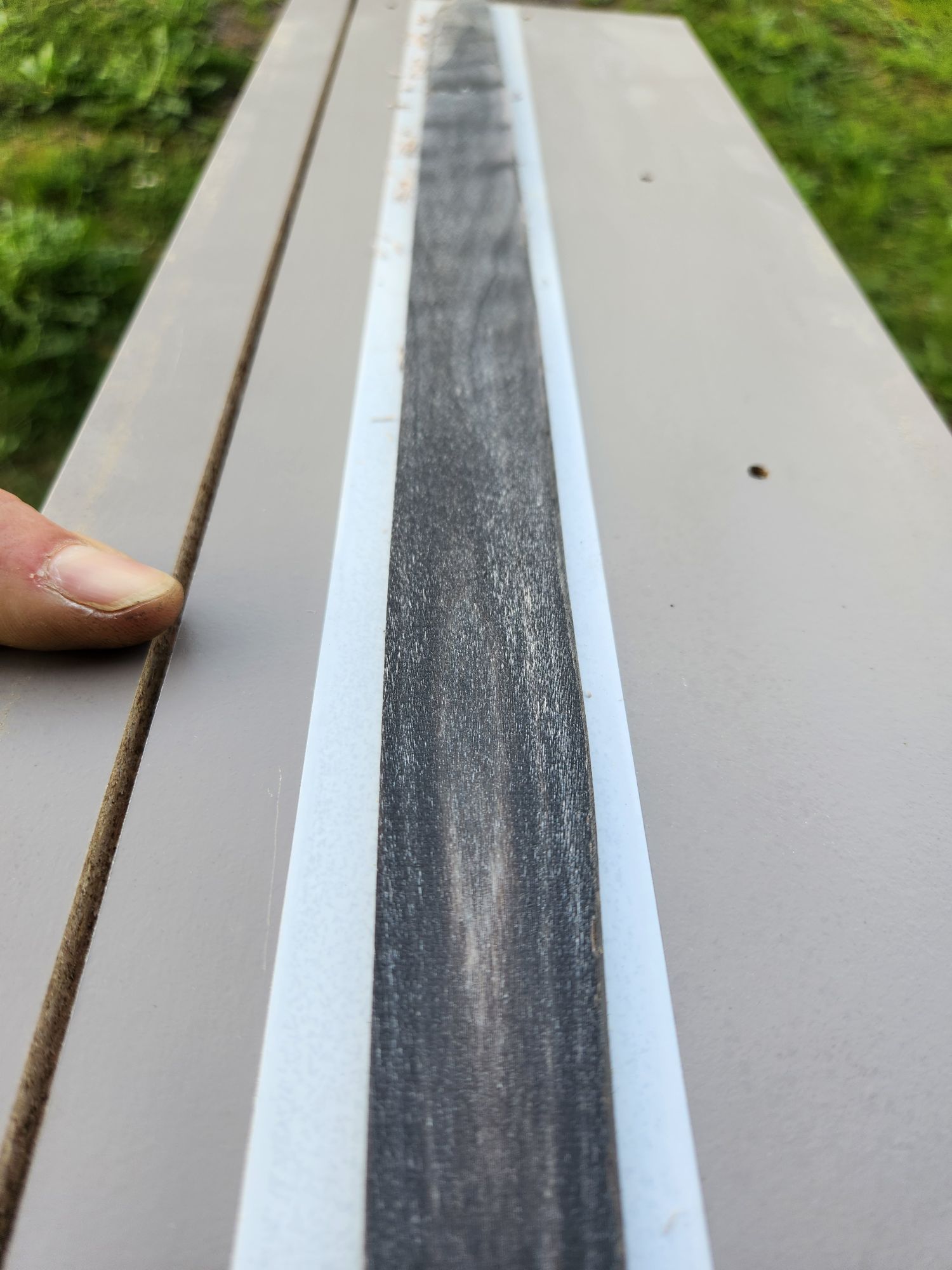 Und dann hab ich einen Hornstreifen mit doppelseitigem Klebeband auf ein Brett geklebt.