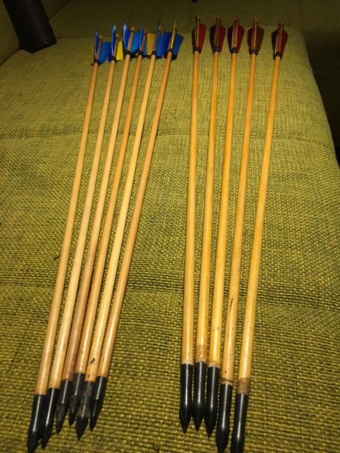 Hier einige Pfeile die ich zusammen mit der Gattin gemacht habe Die Blau gelben sind von Ihr und wirklich erstaunlich gut für die ersten , wie ich ihr gesagt habe .