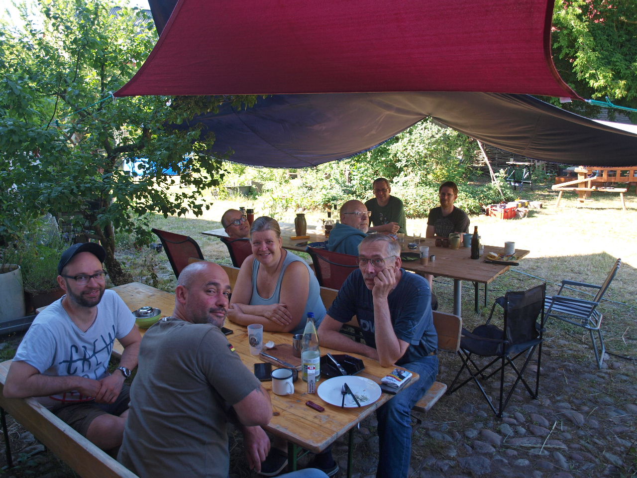 Danke von meiner Seite an die Gastgeber, an Jürgen für den selbst gebackenen Kuchen, an Christian und Maren für die hervorragenden Erdbeeren, an die Spender von Bier, Whiskey, Met, Rum, Likören und Zigarillos.