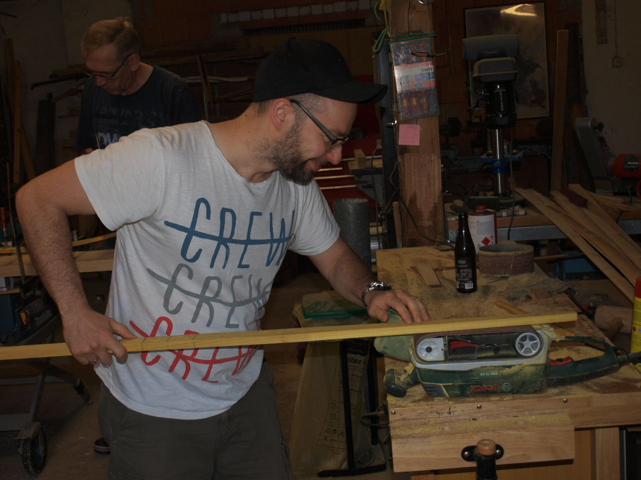 Steffen, Jürgen und Eduard am fertig verleimten Duolam